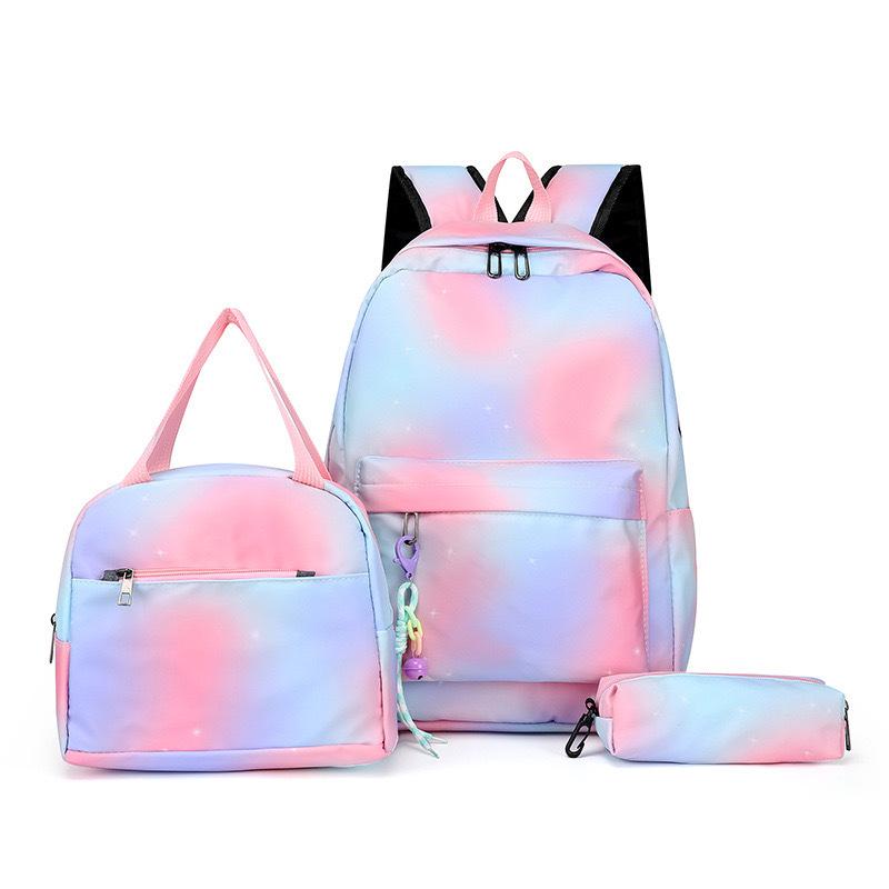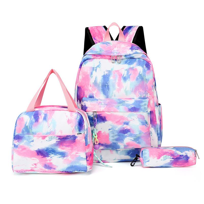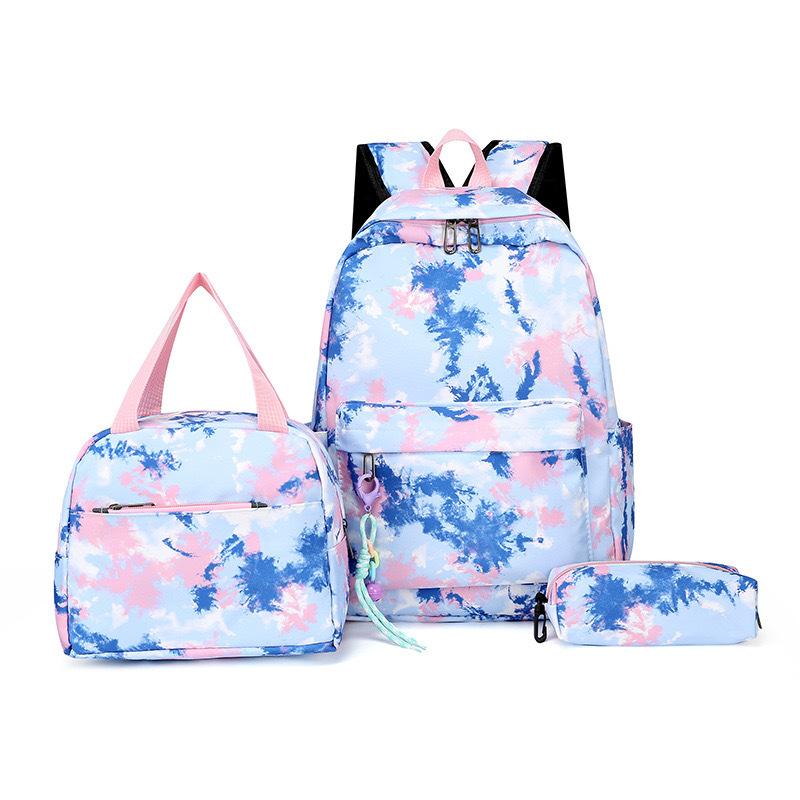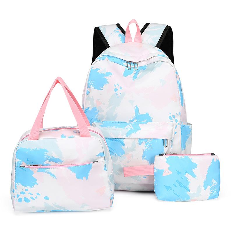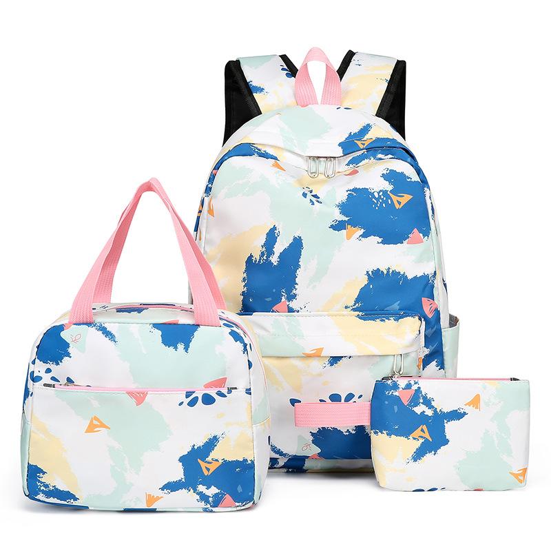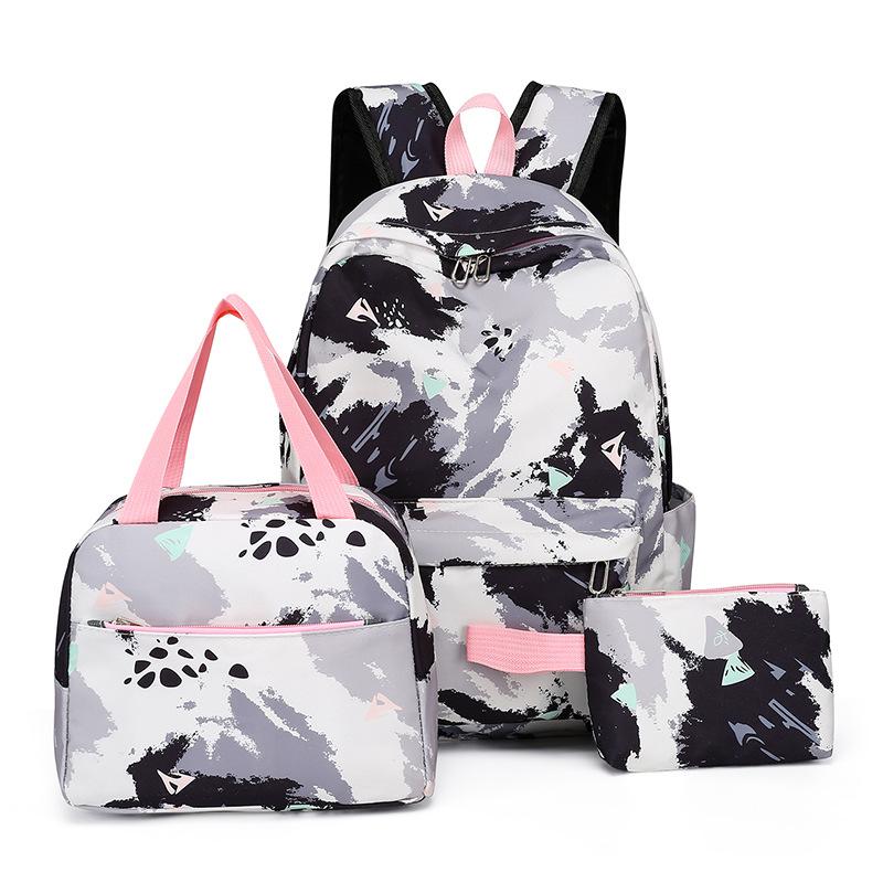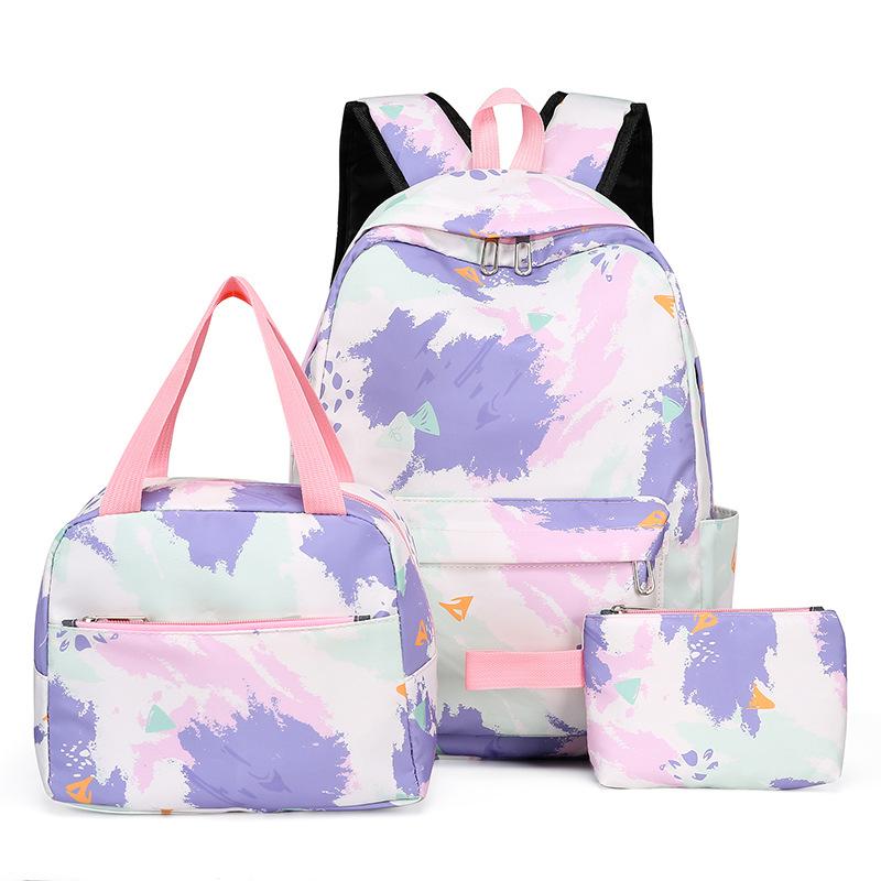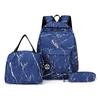 Nueva mochila escolar de tres piezas para estudiantes de primaria y secundaria, lonchera, mochila tres en uno estampada, venta al por mayor transfronteriza