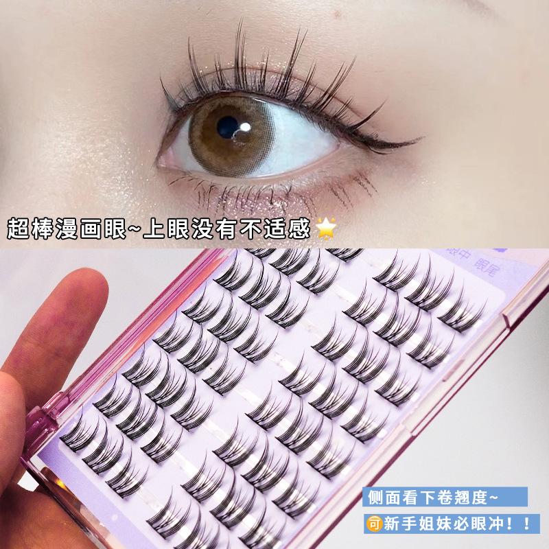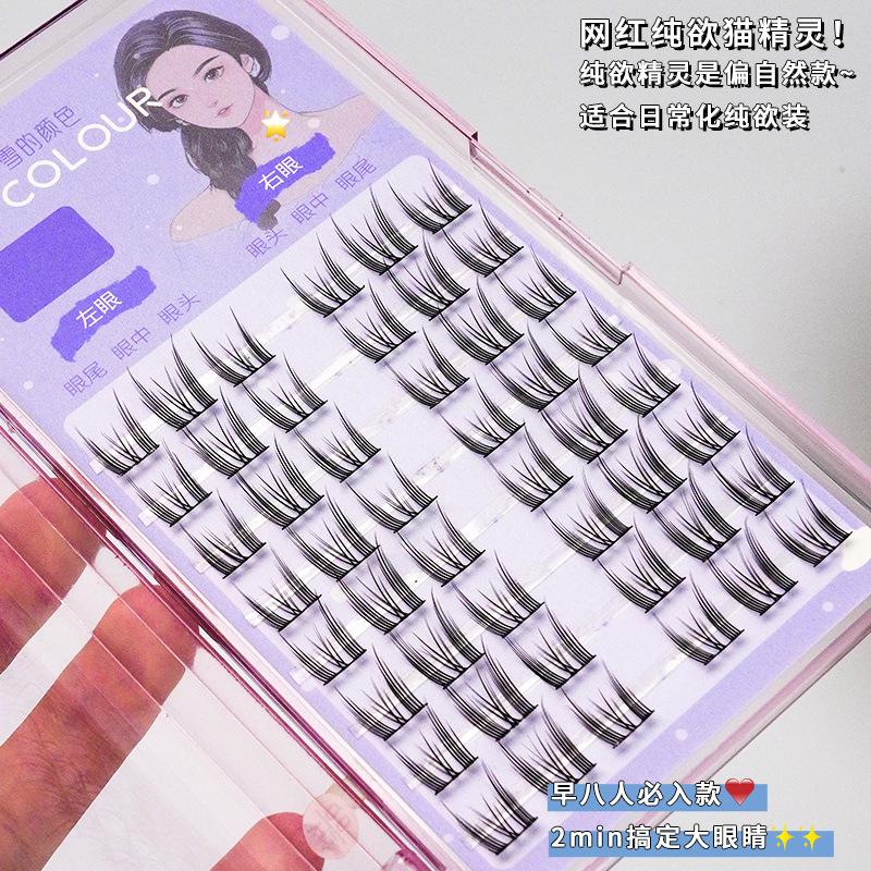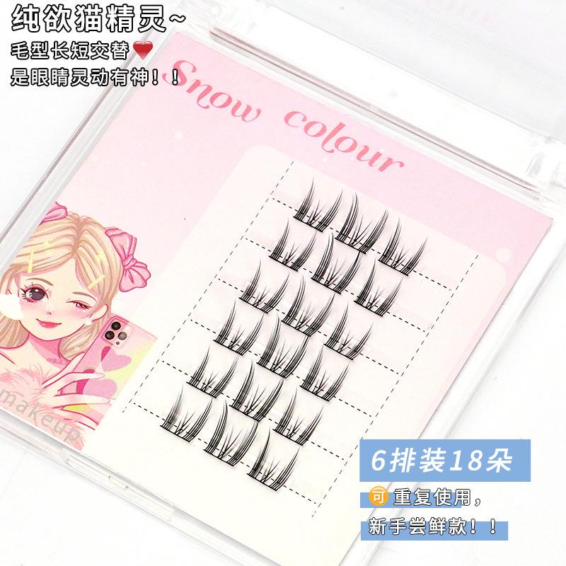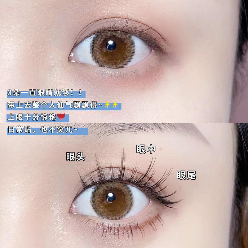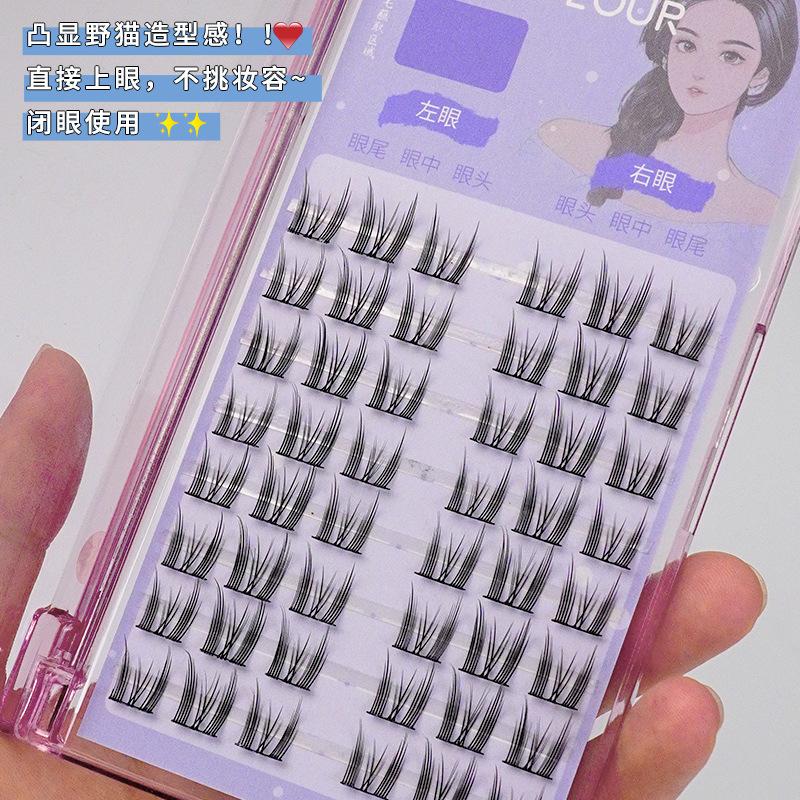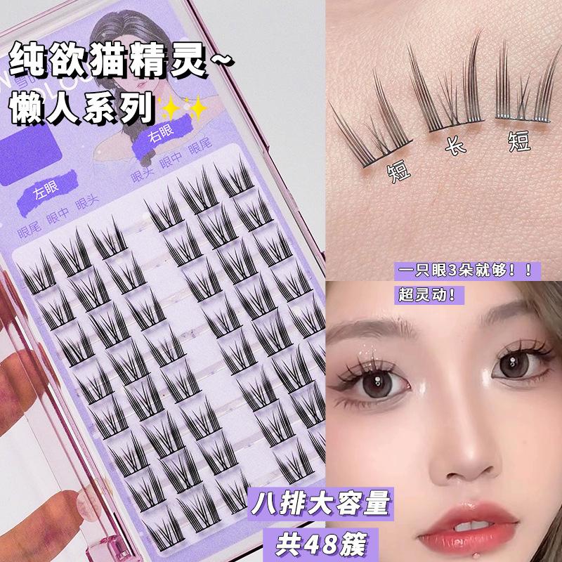 Pestañas postizas con orejas de gatito perezoso, simulación natural, gruesas, de un solo grupo, serie perezosa, pestañas de ojo de elfo de gato diablillo