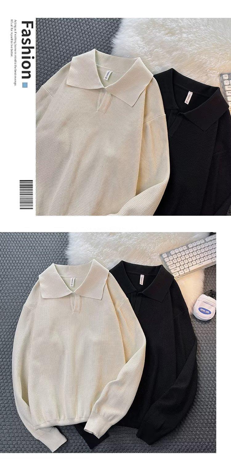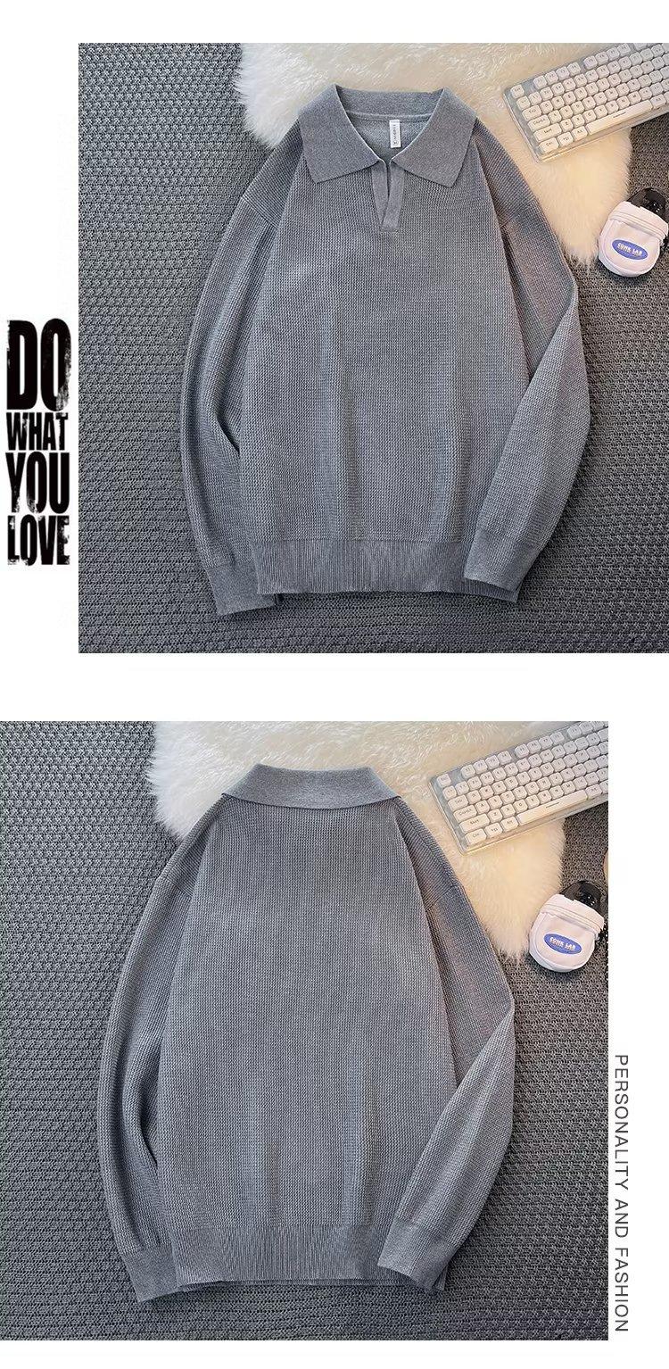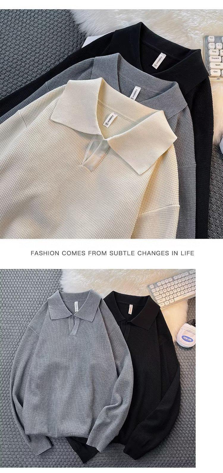 Polo de punto para hombre, otoño e invierno 2023, ropa exterior retro, suéter de solapa, chaqueta holgada y moderna para jóvenes