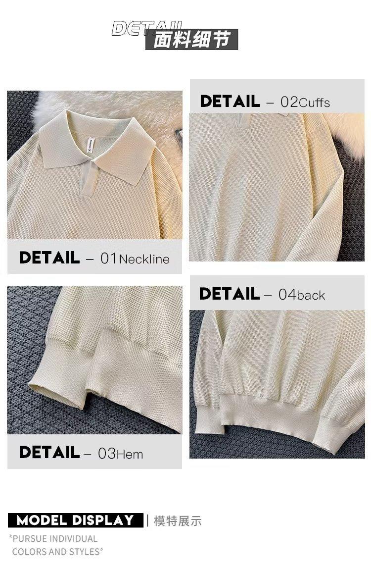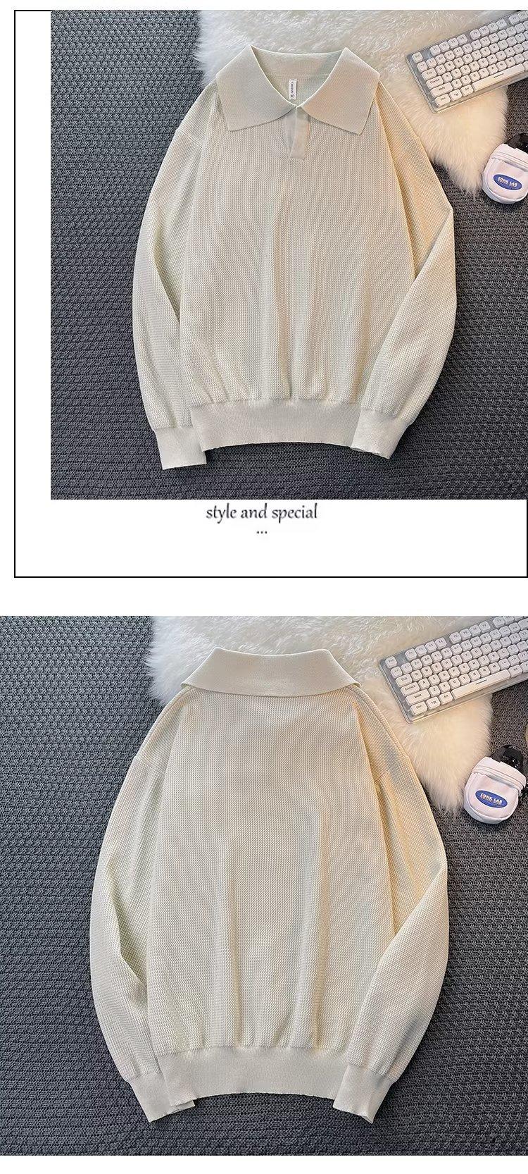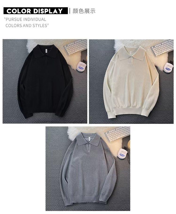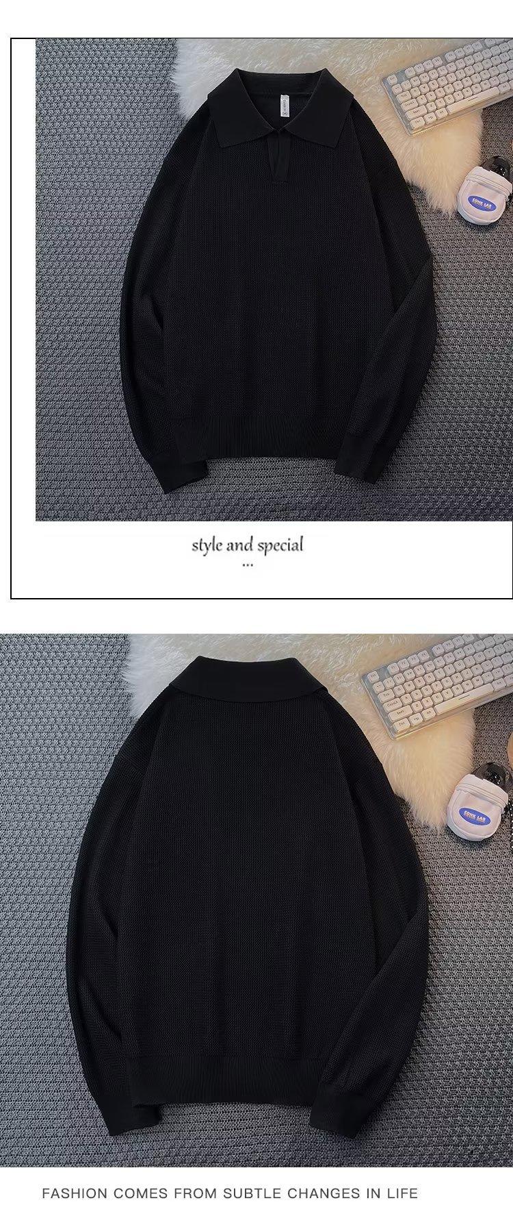 Polo de punto para hombre, otoño e invierno 2023, ropa exterior retro, suéter de solapa, chaqueta holgada y moderna para jóvenes