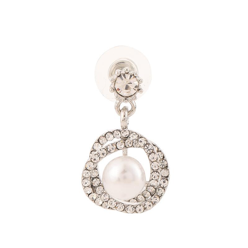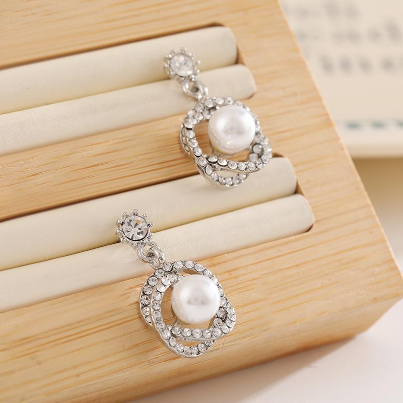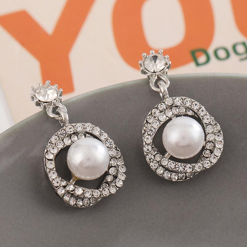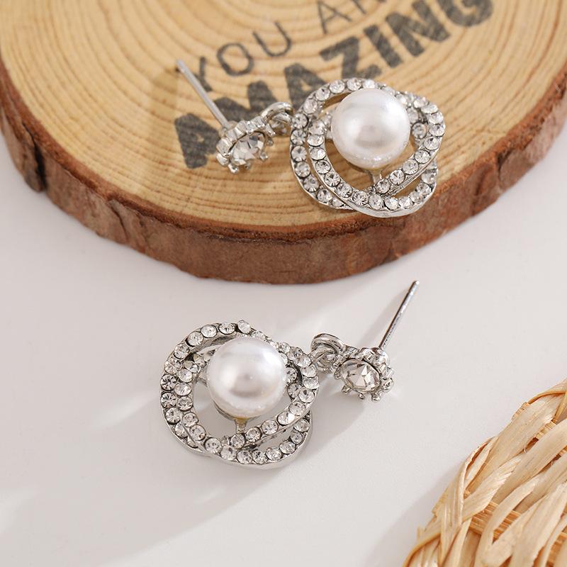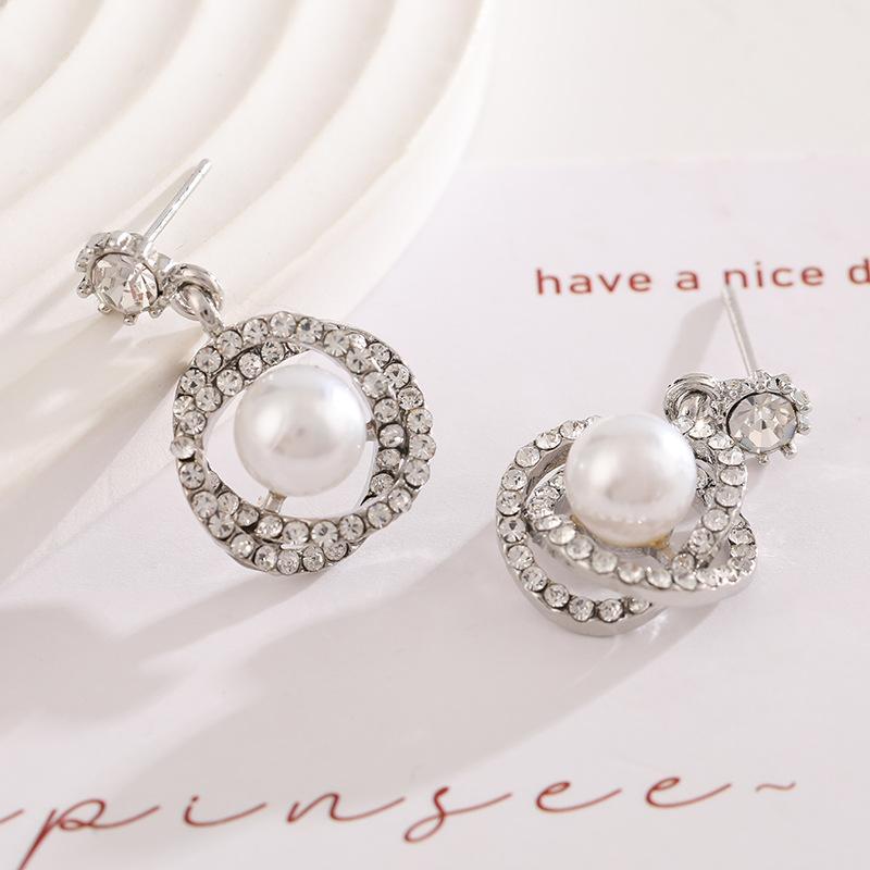 Compra Pendientes de perlas de lujo ligeros de estilo coreano, pendientes de circonita con círculo geométrico, elegantes pendientes de estilo francés de nicho de alta clase. al por mayor en Joom.pro