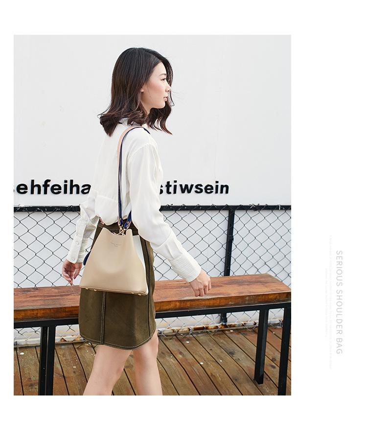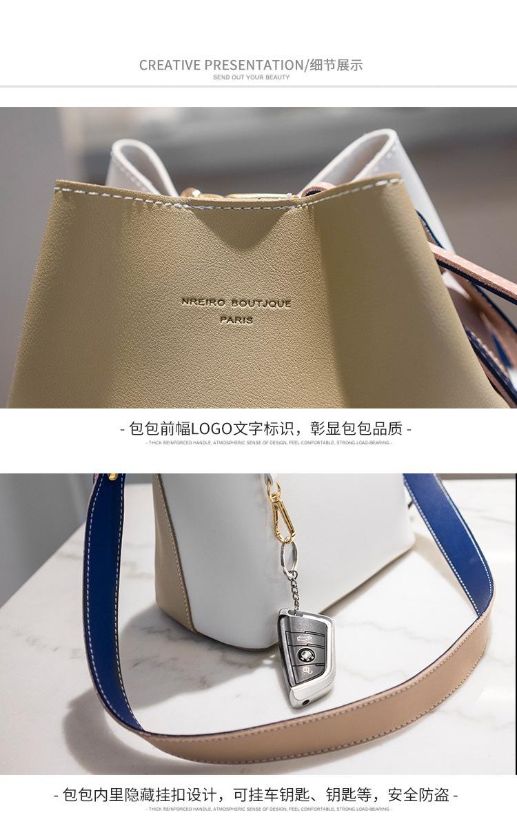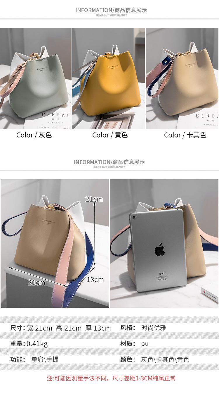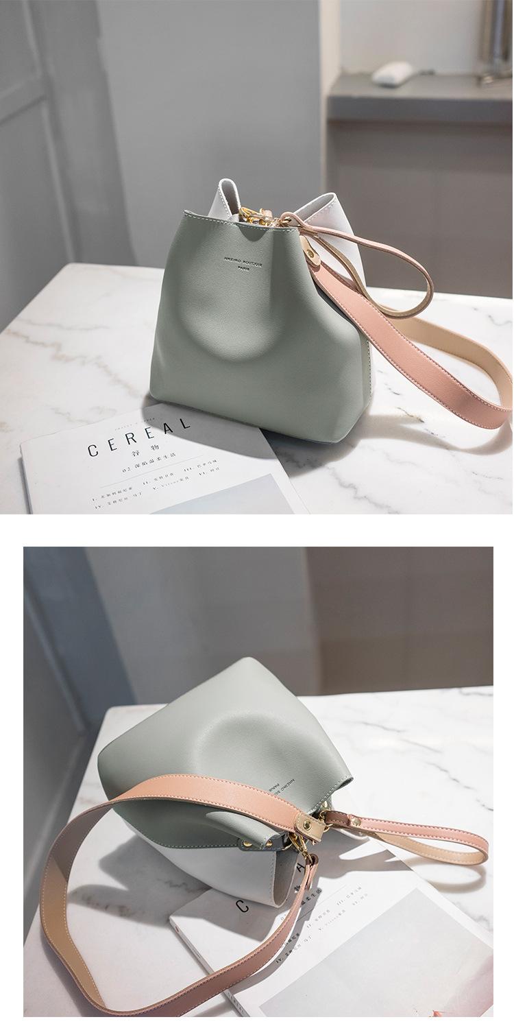 Bolso de Cubo Estilo Coreano 2025 Bolso de Hombro Cruzado para Mujer con Hebilla Decorativa Correa de Hombro Ancha Bolso de Mano Versátil Patchwork