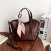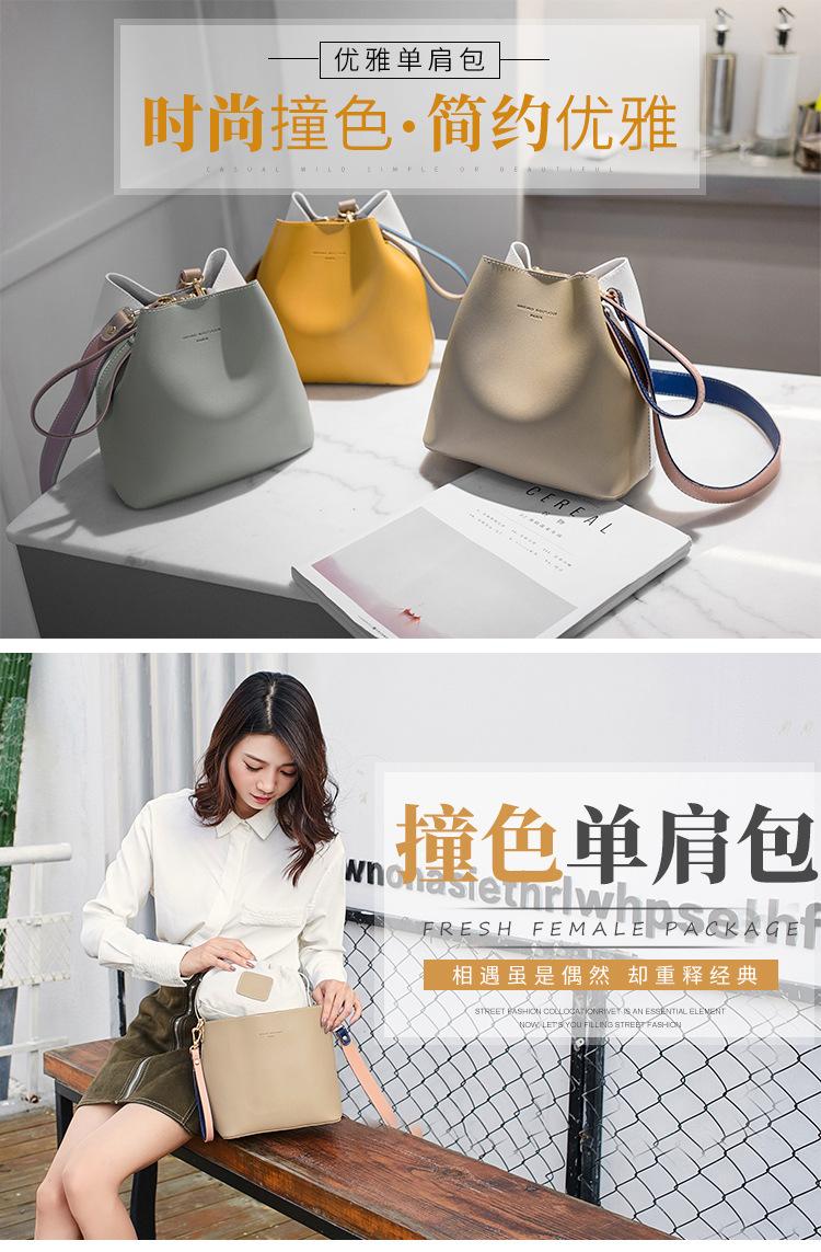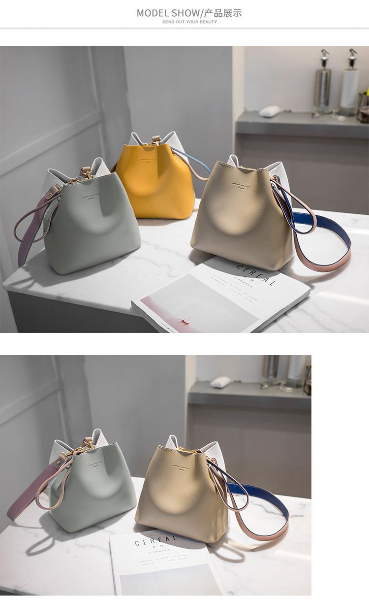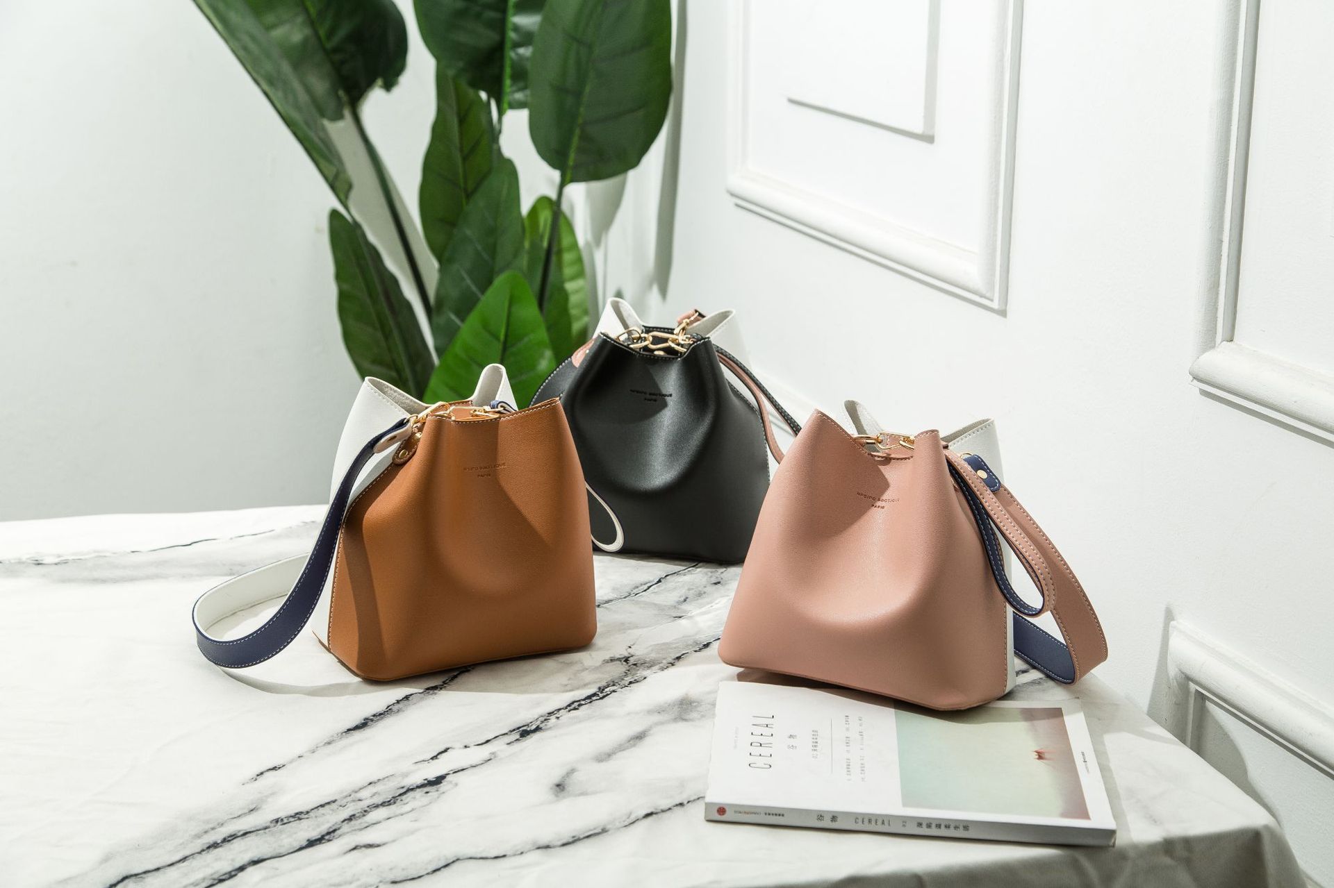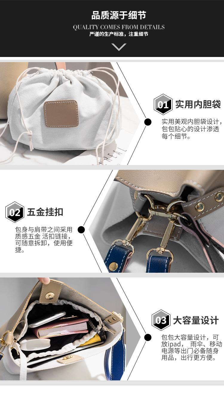 Bolso de Cubo Estilo Coreano 2025 Bolso de Hombro Cruzado para Mujer con Hebilla Decorativa Correa de Hombro Ancha Bolso de Mano Versátil Patchwork