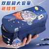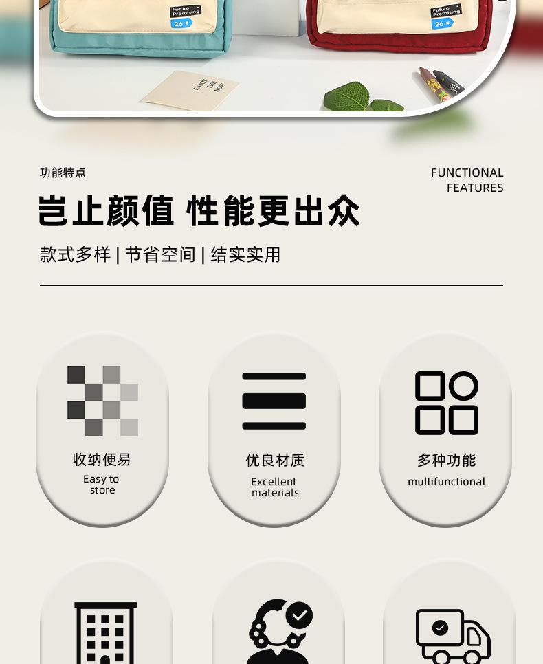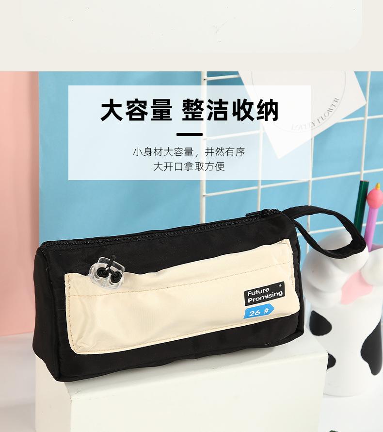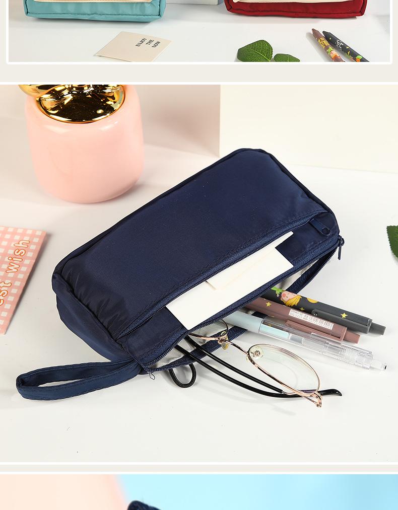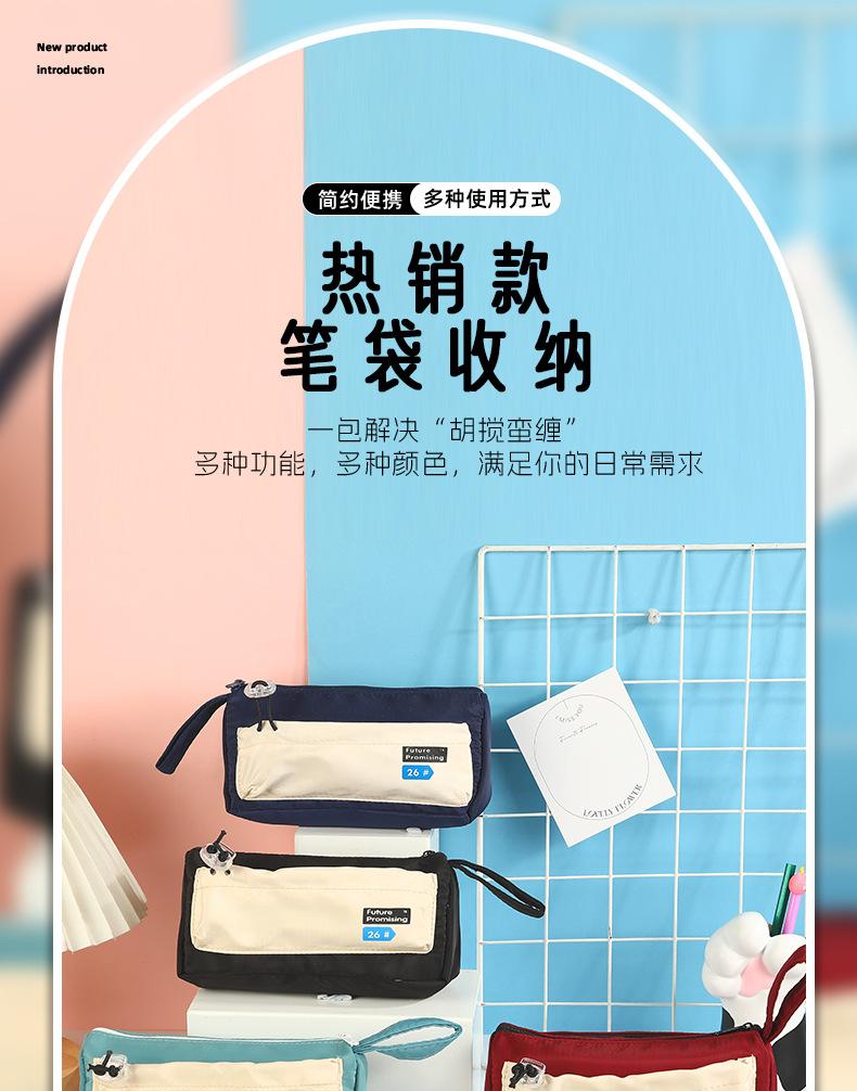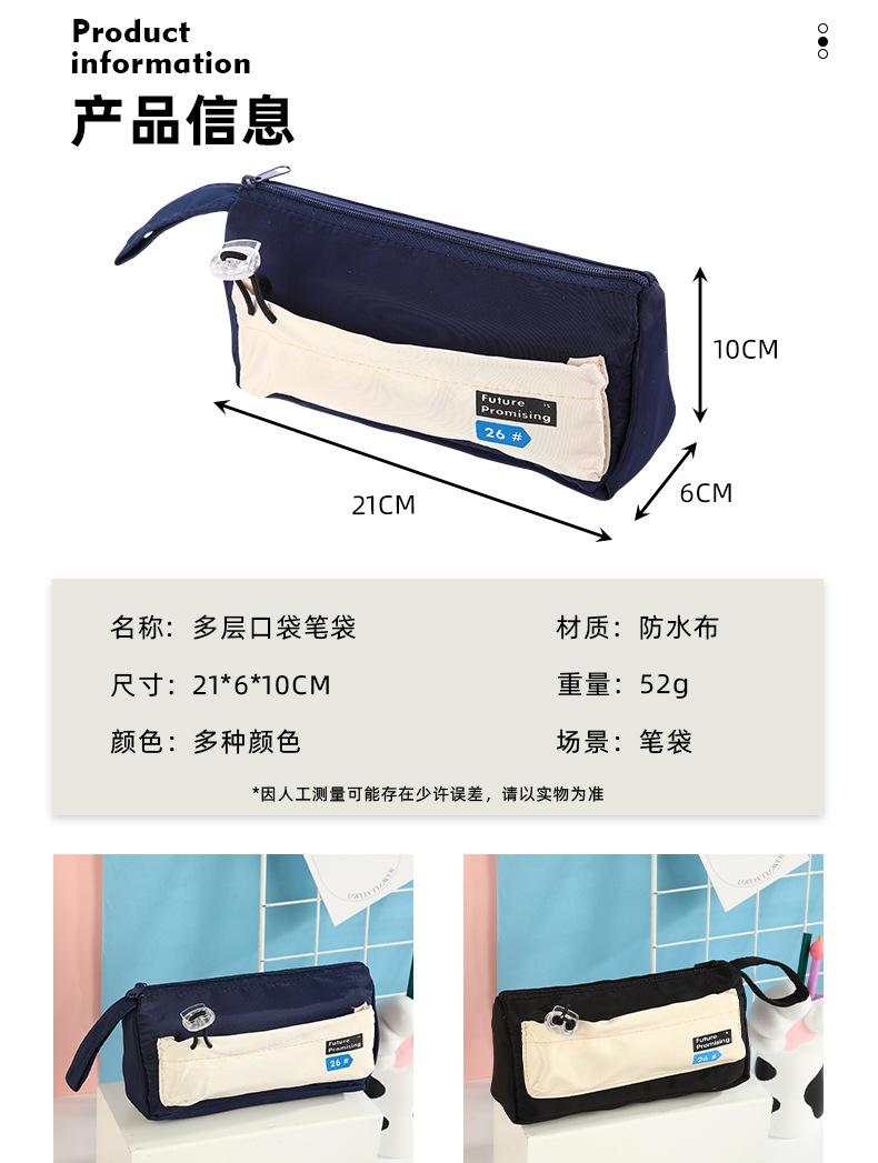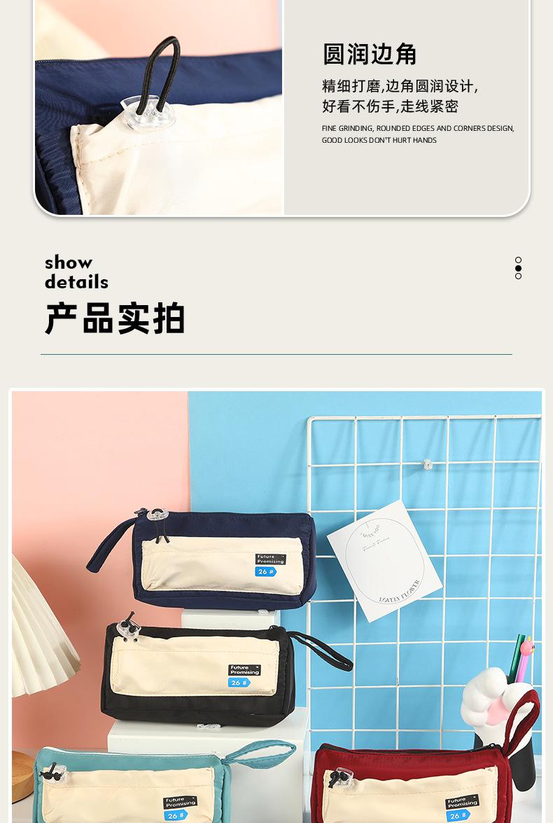 Estuche para lápices con costuras de lona en bloques de color, Bolsa de papelería para estudiantes, Almacenamiento fresco por capas para papelería, Almacenamiento impermeable y multifuncional