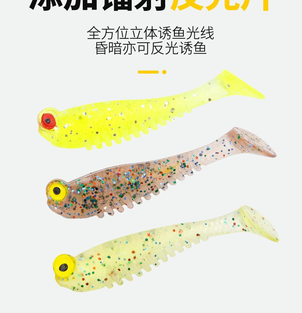 Cebo blando Luya de 5,5 cm y 7 cm de largo, cola de pez pequeño, cebo falso, simulación de pez blando, explosiones transfronterizas.