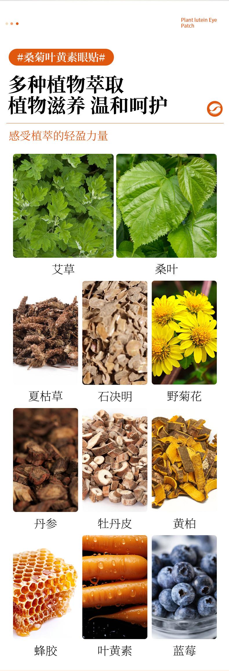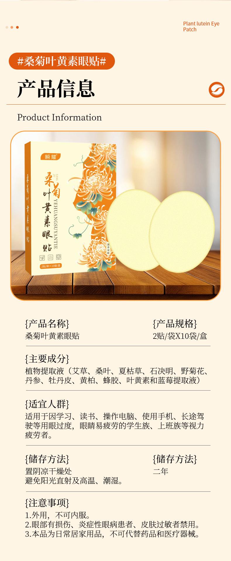 Instant radiance mulberry leaf lutein eye patches, Instant brilliance cassia seed patches, Blueberry lutein eye patches