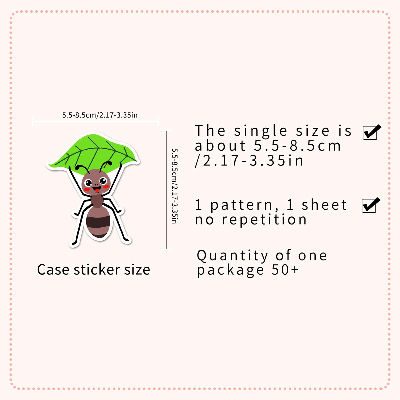50 pegatinas de dibujos animados de hormigas para niños, diseño de mano, taza de agua, tarjeta impermeable, decoración, paisaje, taza