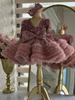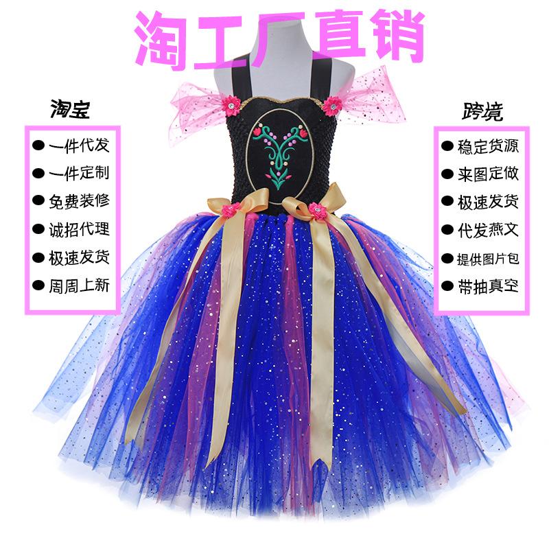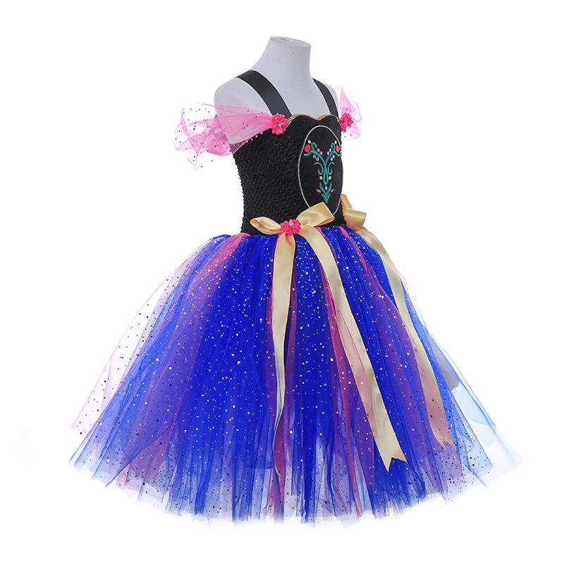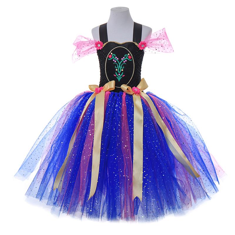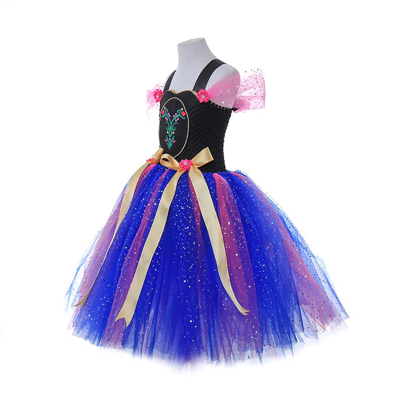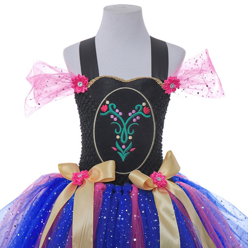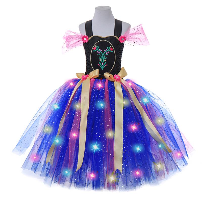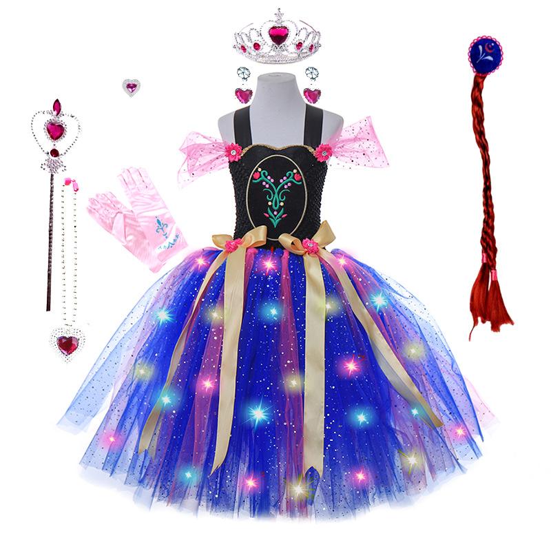 Vestido de princesa Anna con lentejuelas y luces intermitentes, vestido largo de alta gama para niña, vestido de princesa con falda tutú, novedad de 2024