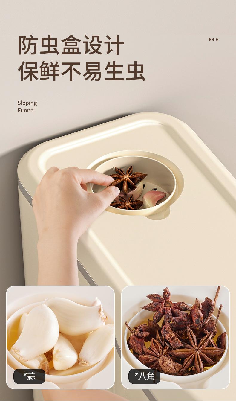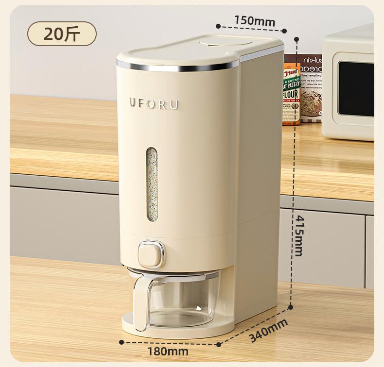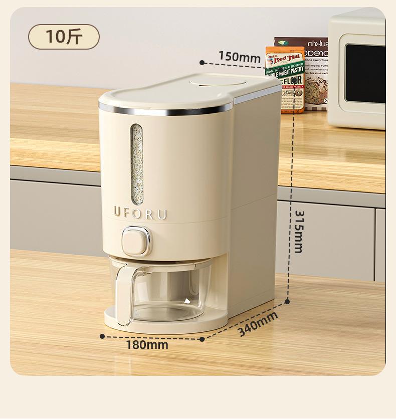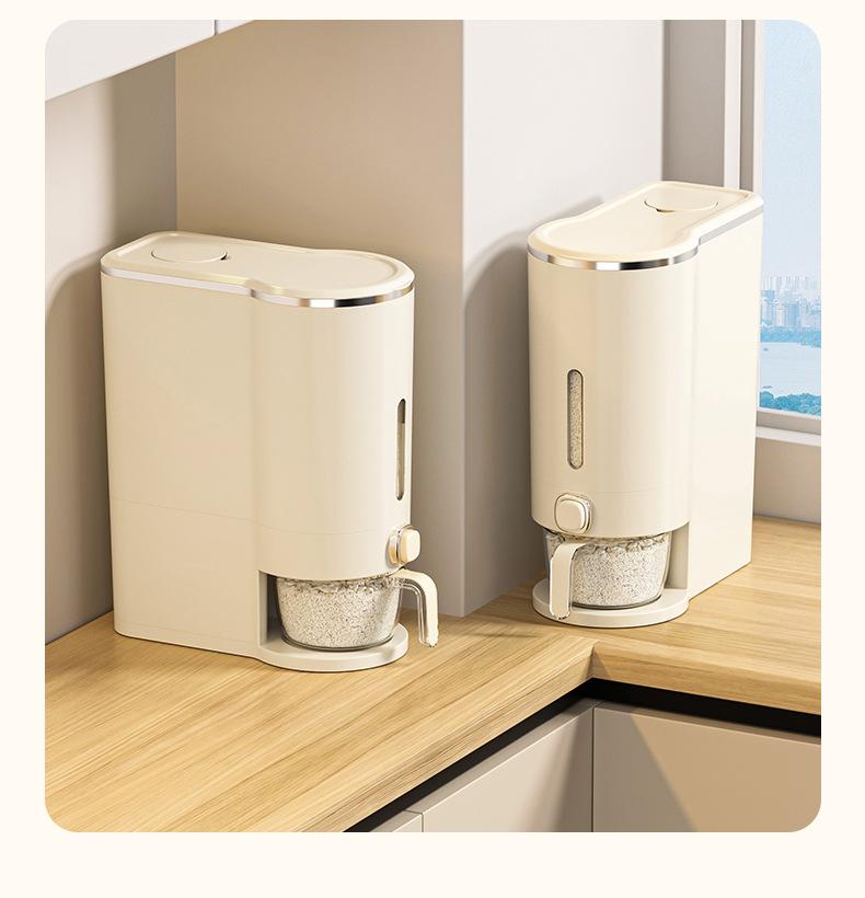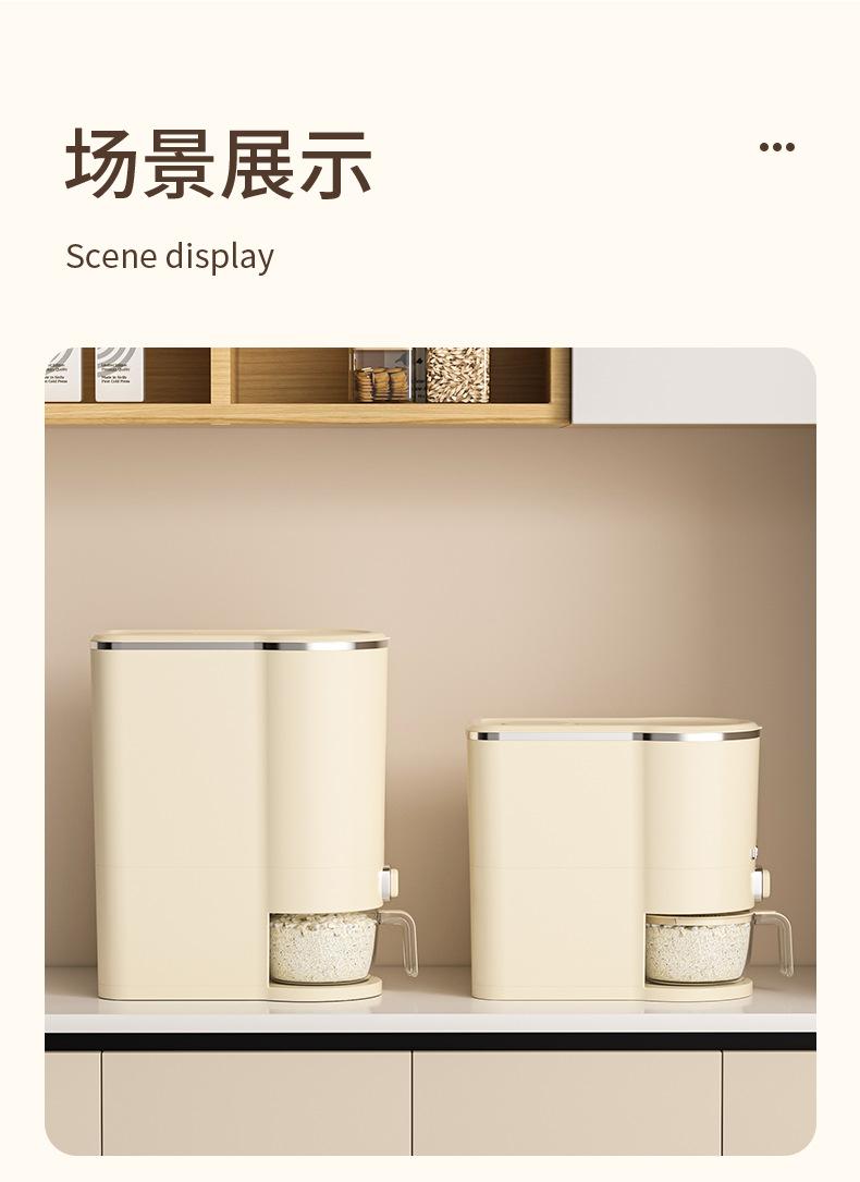 Cubo de arroz estilo crema, contenedor de arroz doméstico de grado alimenticio, caja de almacenamiento de granos múltiples, tanque de almacenamiento de harina sellado a prueba de insectos y humedad
