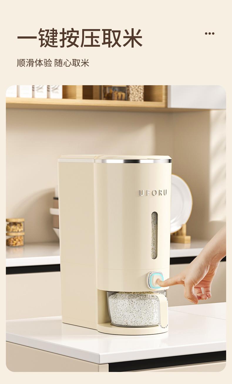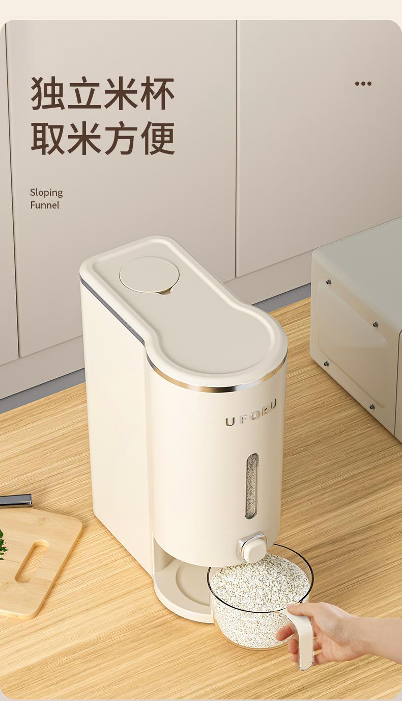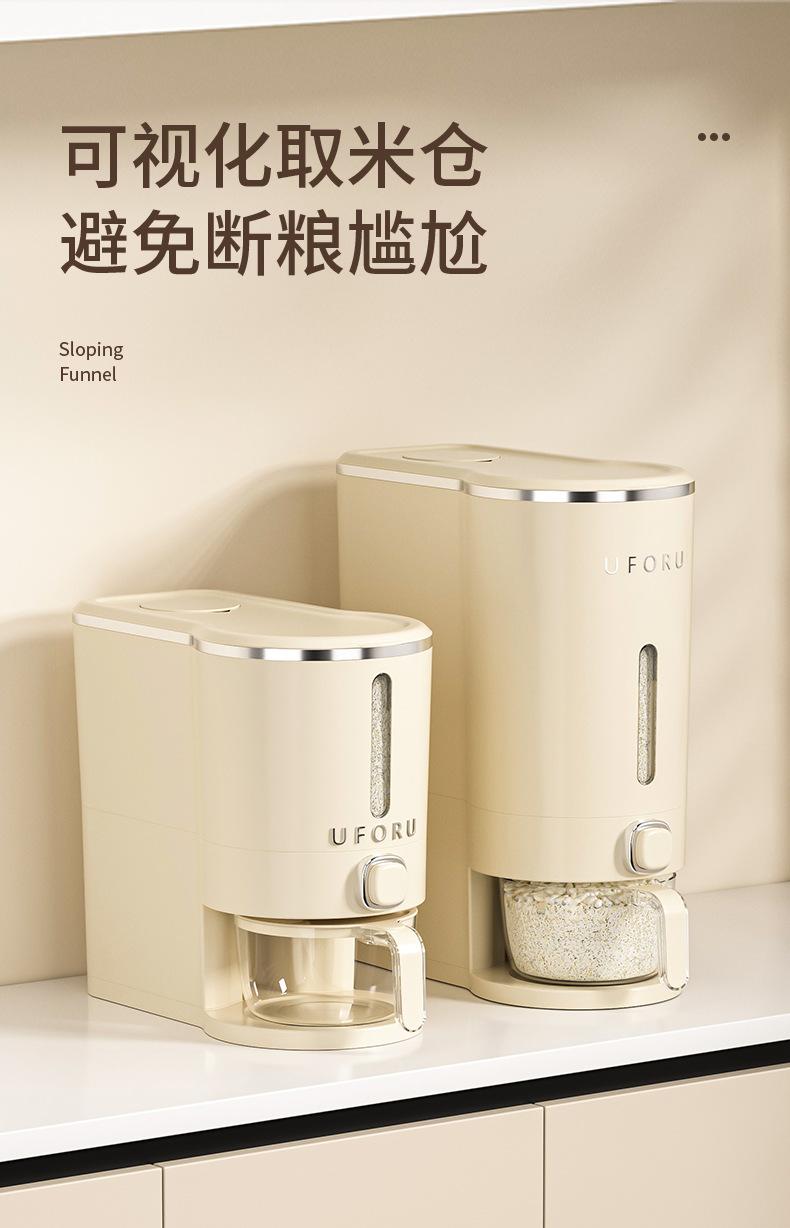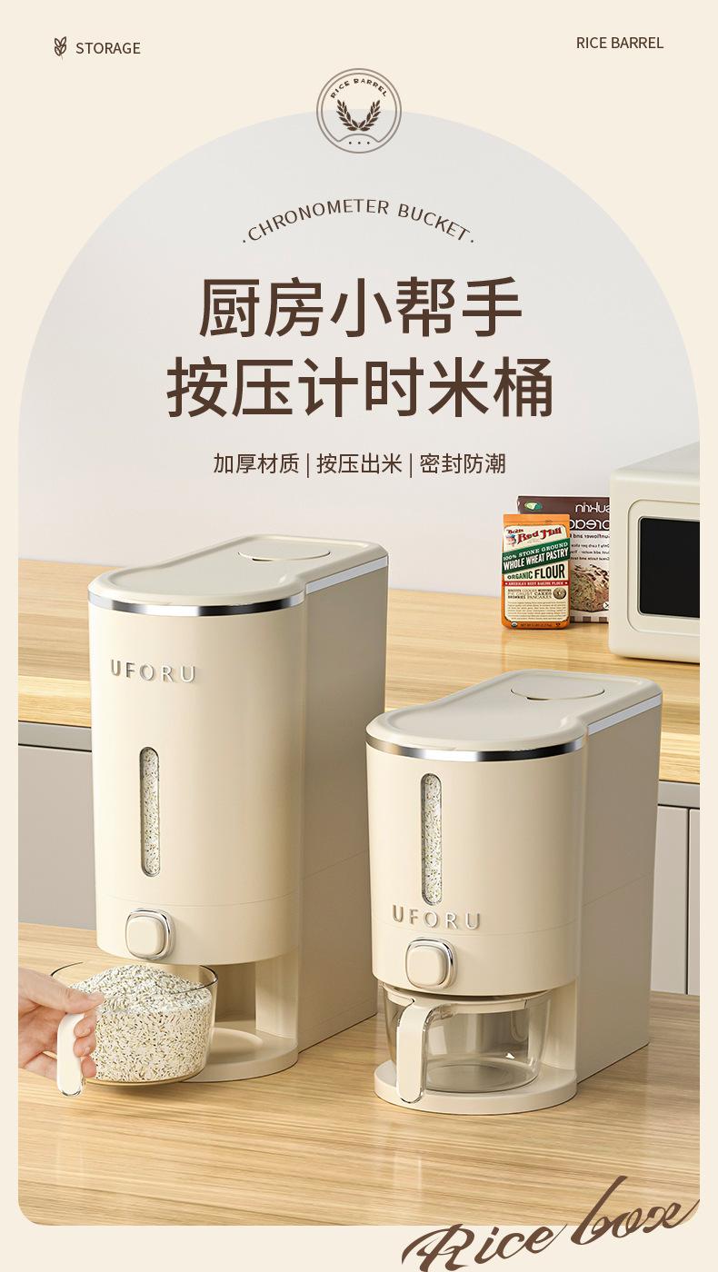 Cubo de arroz estilo crema, contenedor de arroz doméstico de grado alimenticio, caja de almacenamiento de granos múltiples, tanque de almacenamiento de harina sellado a prueba de insectos y humedad