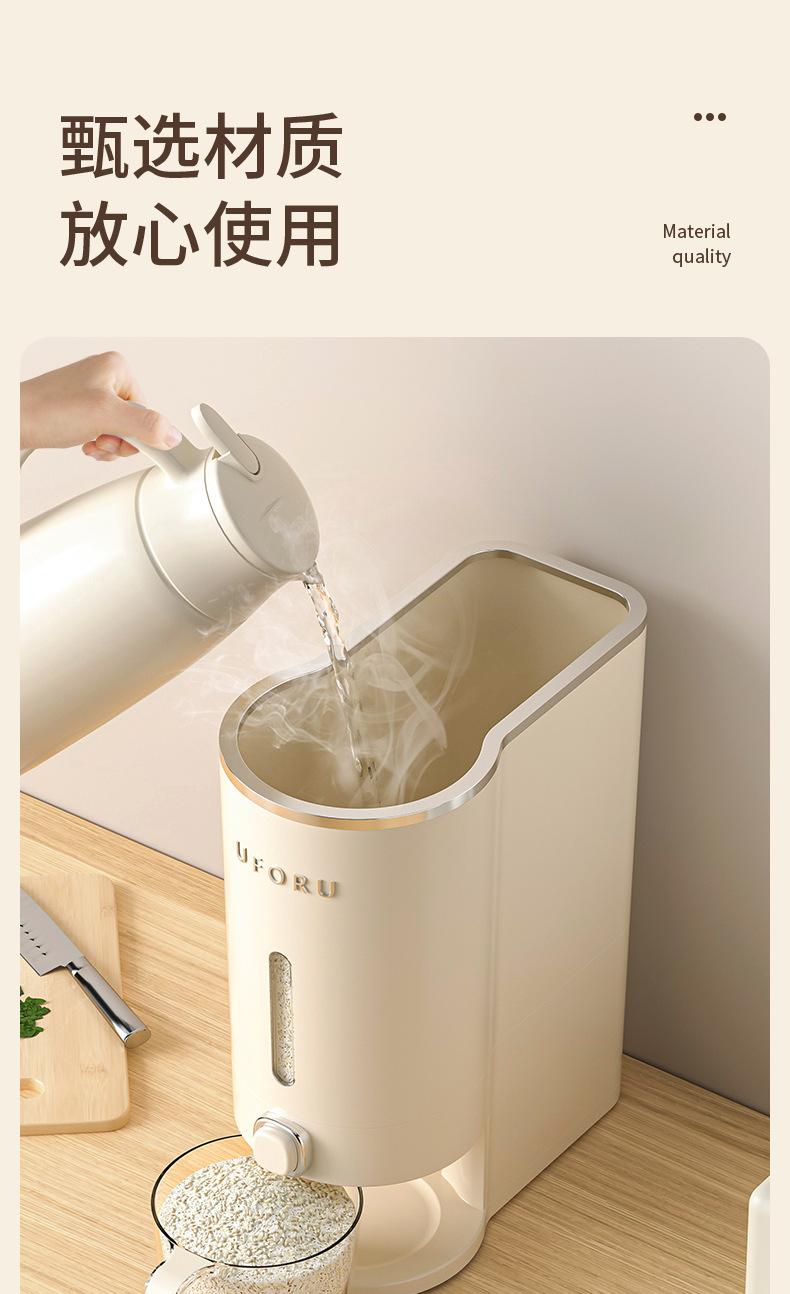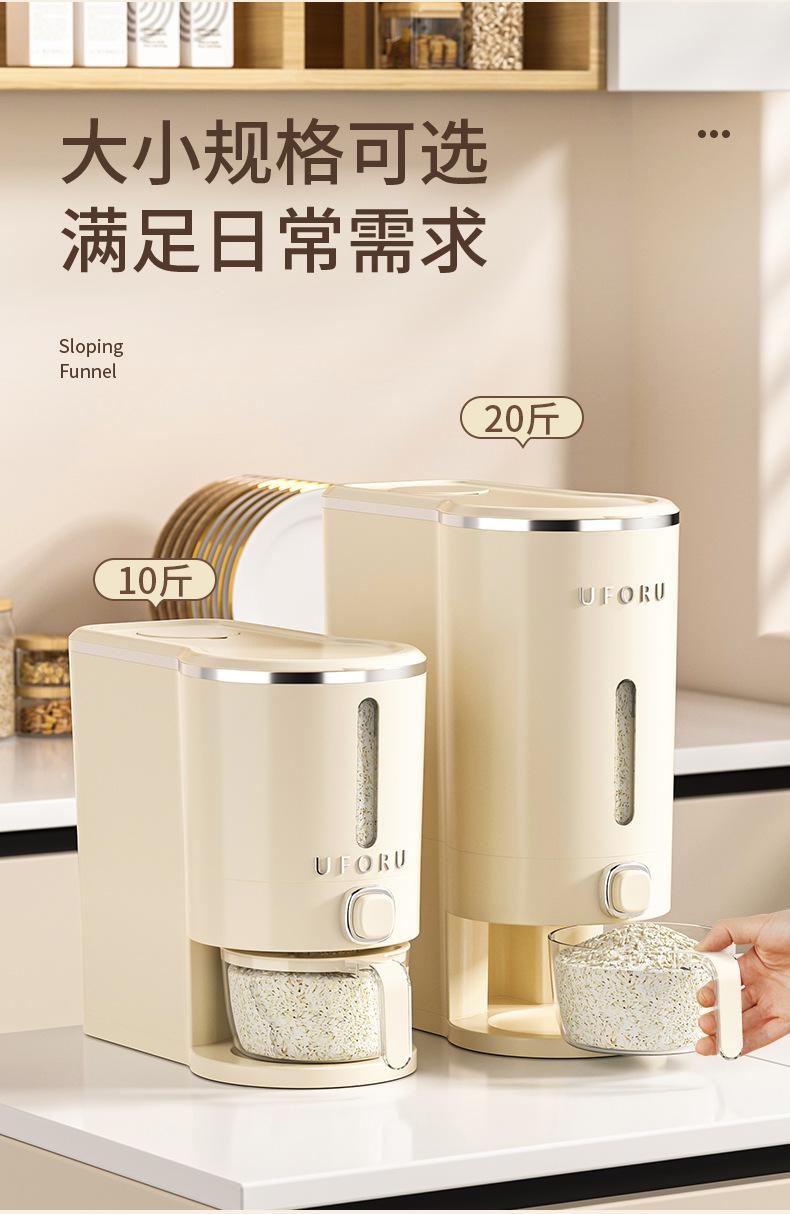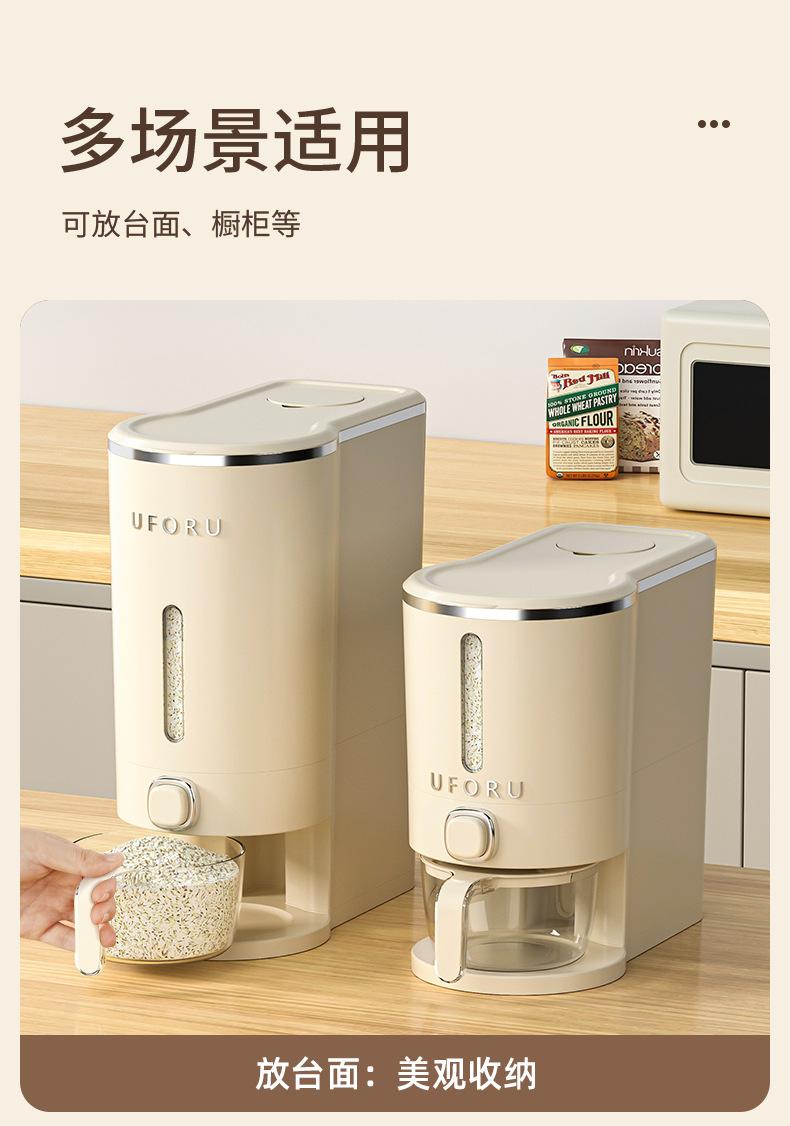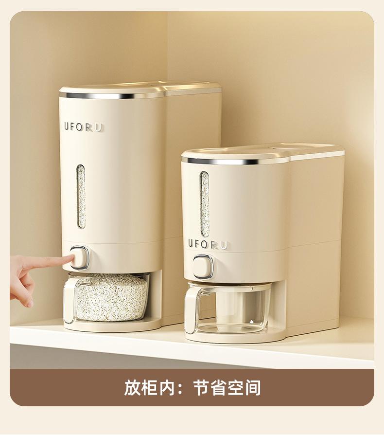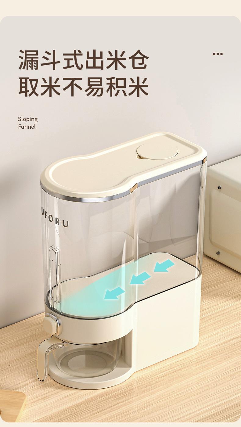 Cubo de arroz estilo crema, contenedor de arroz doméstico de grado alimenticio, caja de almacenamiento de granos múltiples, tanque de almacenamiento de harina sellado a prueba de insectos y humedad
