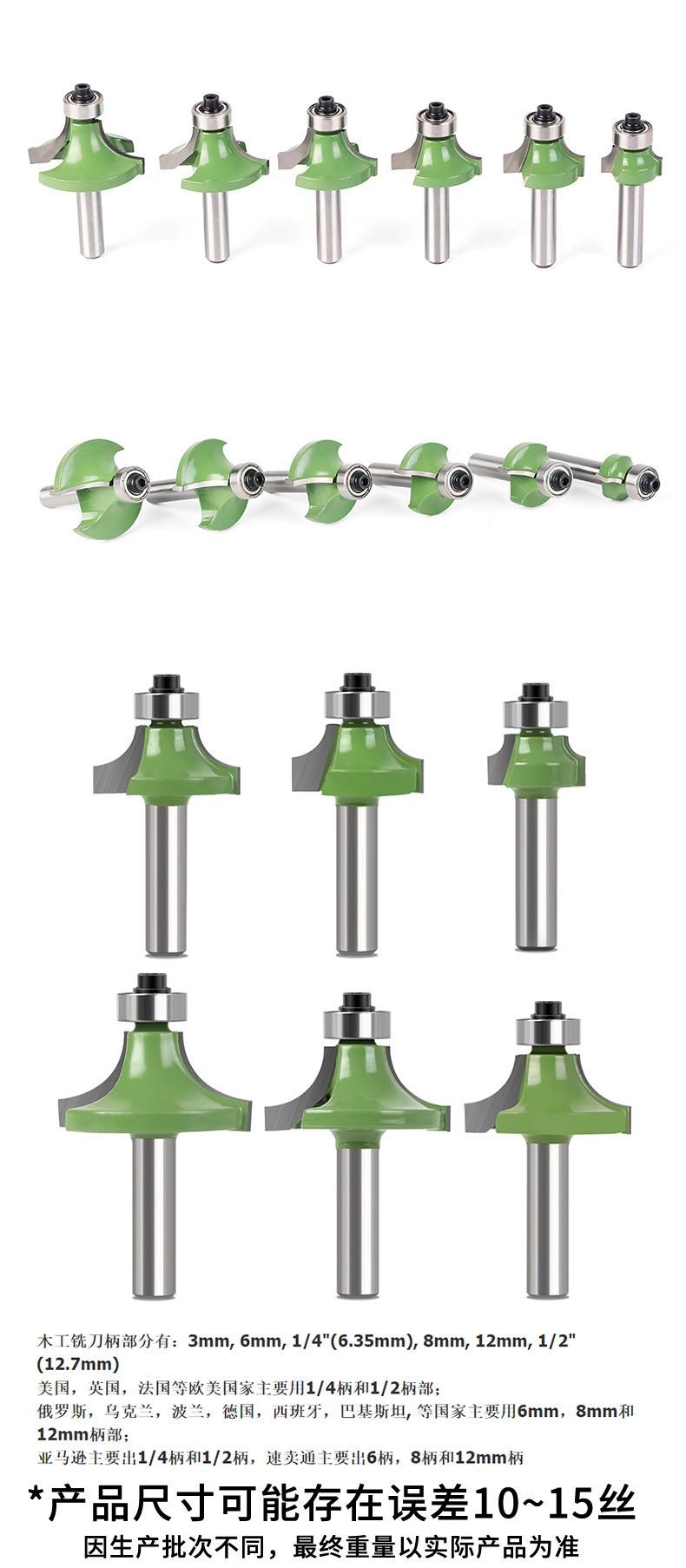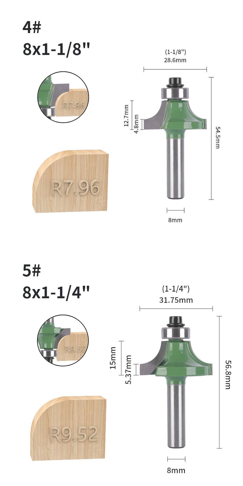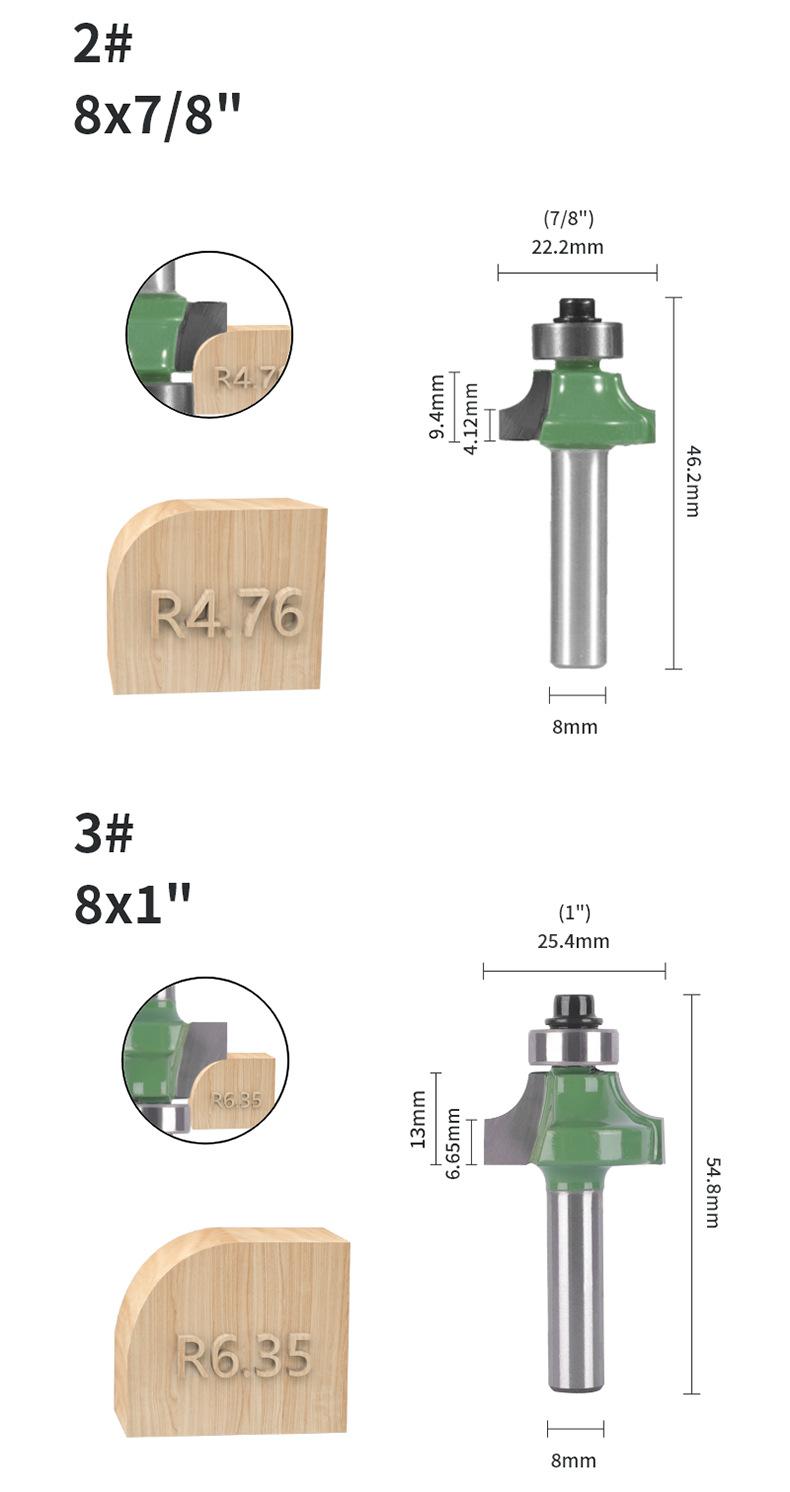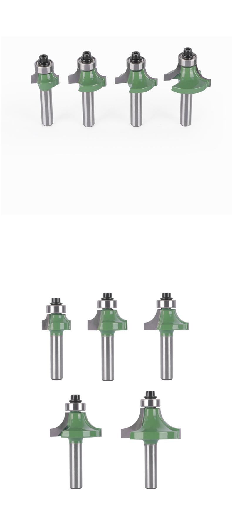 Cortador de ángulo redondo 8 mango verde juego de 5 piezas aleación de acero de tungsteno cortador de ángulo redondo biselado fresa para carpintería