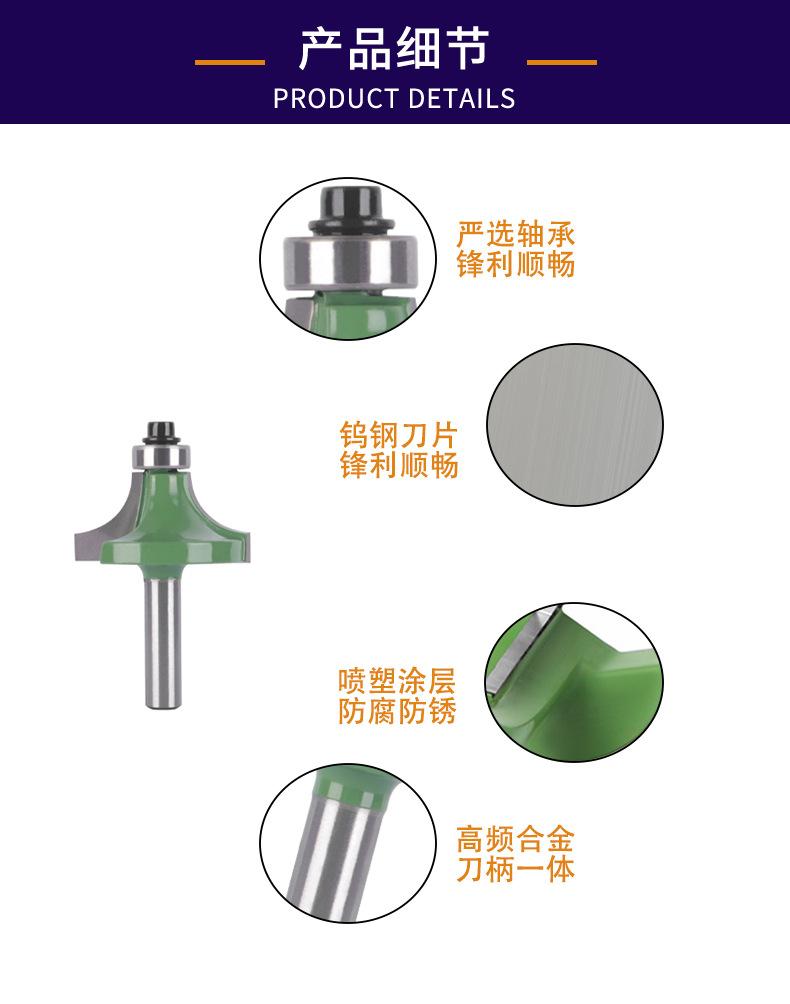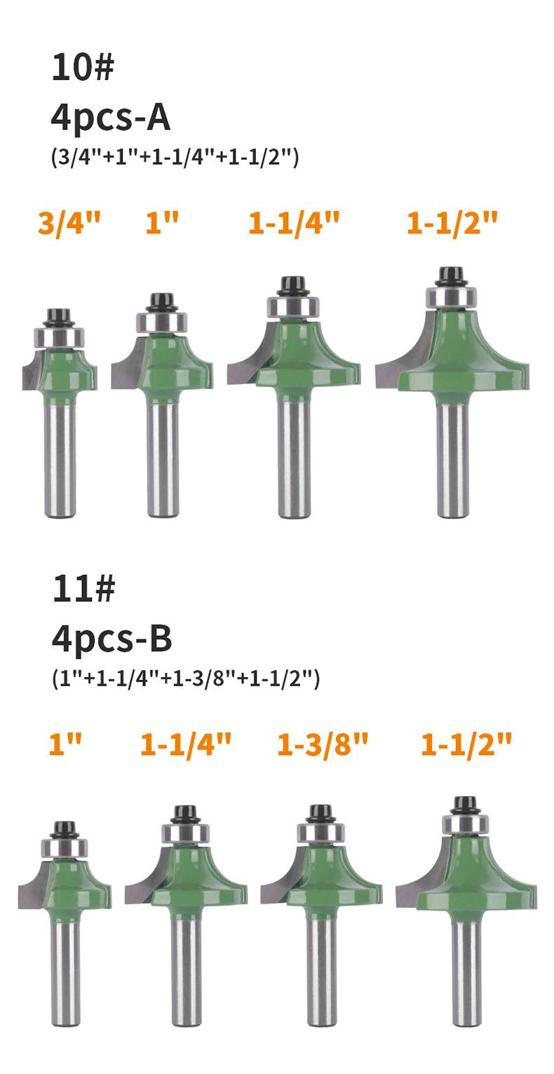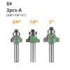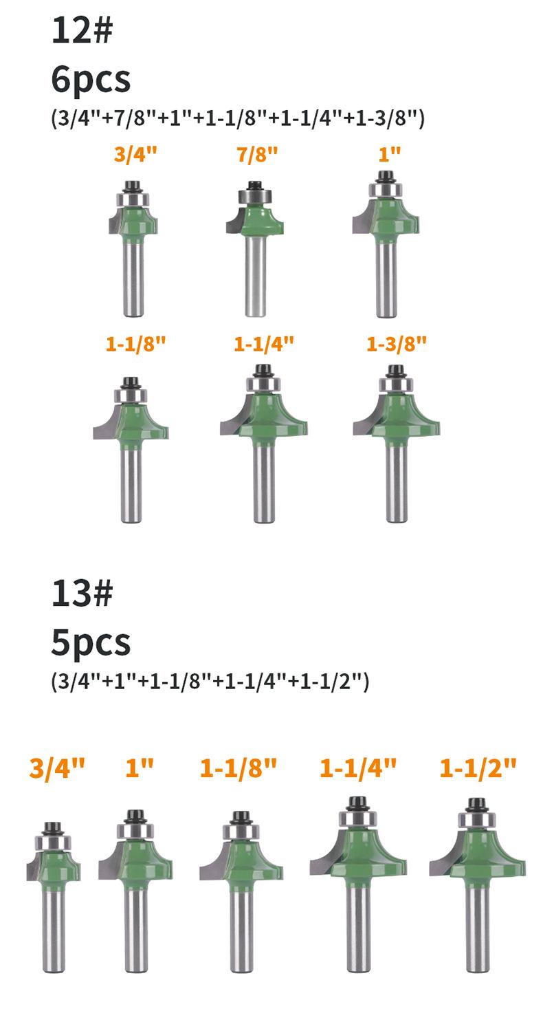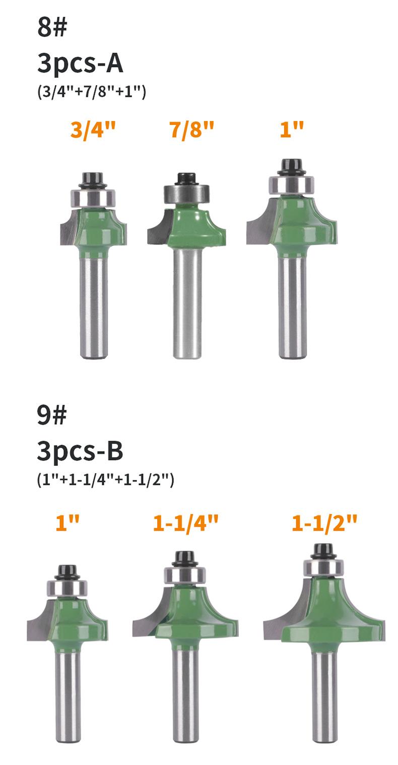 Cortador de ángulo redondo 8 mango verde juego de 5 piezas aleación de acero de tungsteno cortador de ángulo redondo biselado fresa para carpintería