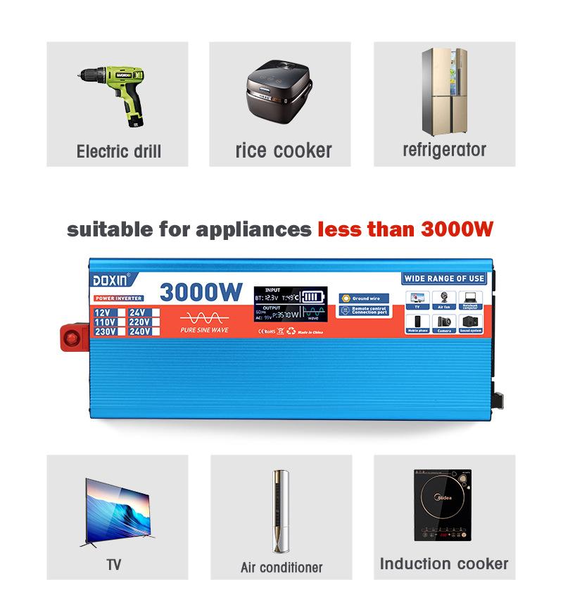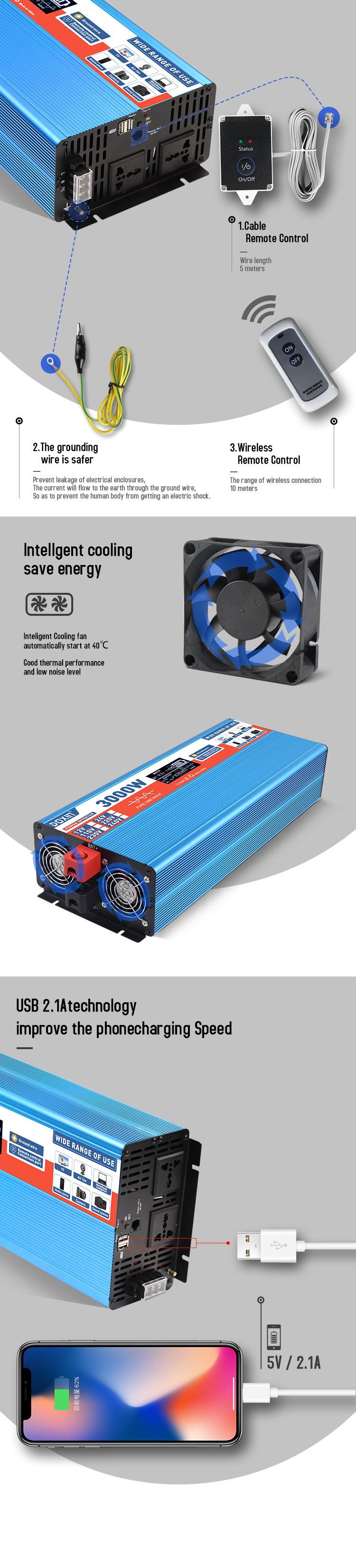 Compra Venta caliente transfronteriza onda sinusoidal pura 3000W Pantalla LCD inteligente Monitoreo fotovoltaico RV fuente de alimentación inversor esencial con control remoto al por mayor en Joom.pro