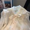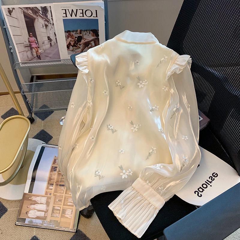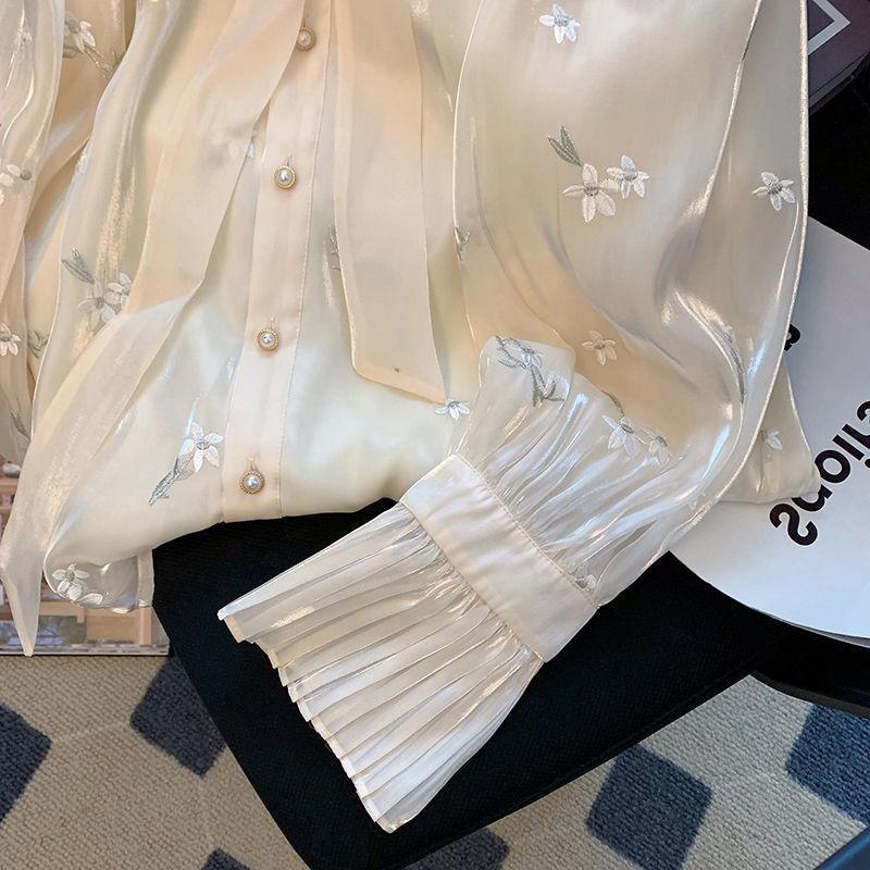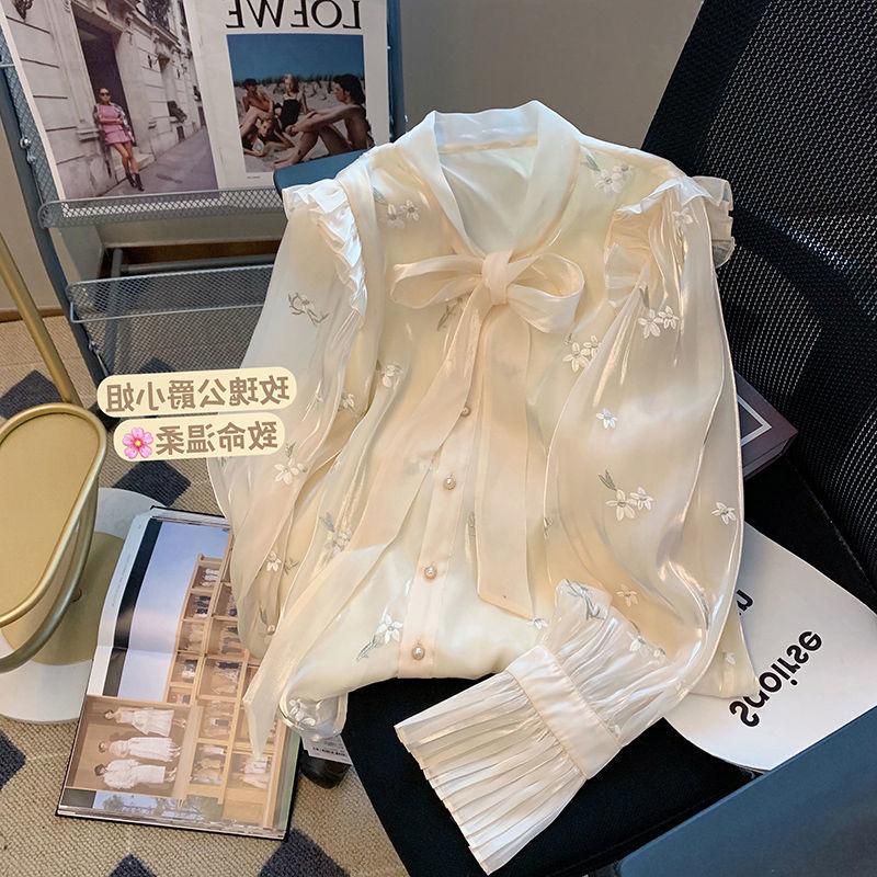 Camisa de lazo pequeño para mujer en primavera con un nicho chic francés chic estilo Hong Kong tops de camisa de alta gama