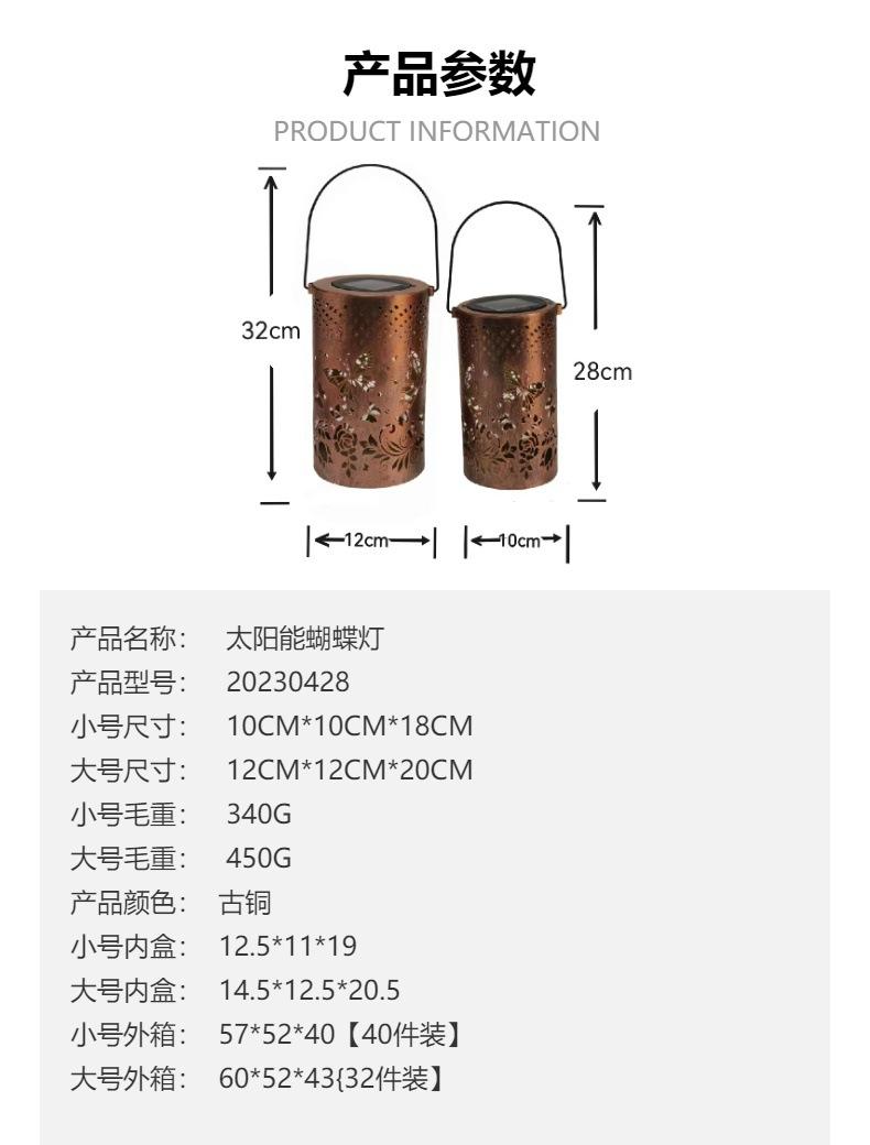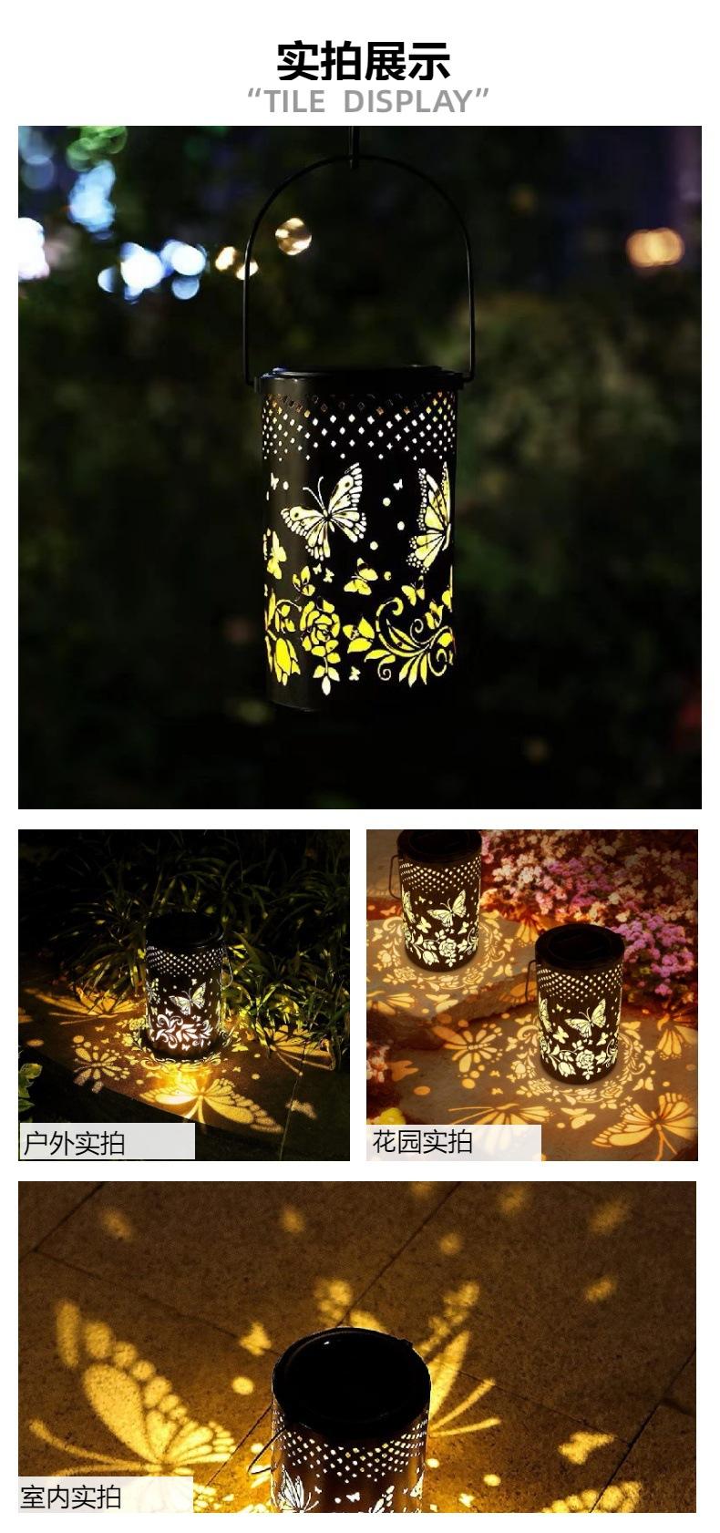 Nueva lámpara solar de mariposa con diseño de mariposa, linterna hueca de hierro transfronterizo, impermeable, para exteriores, lámpara de proyección solar decorativa para patio.