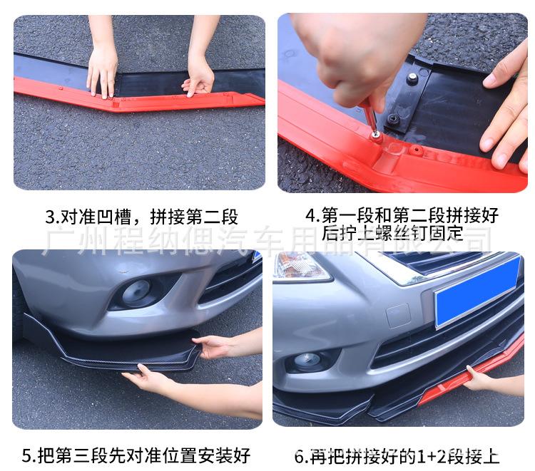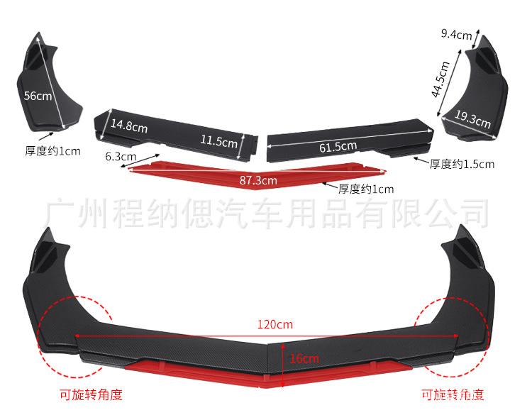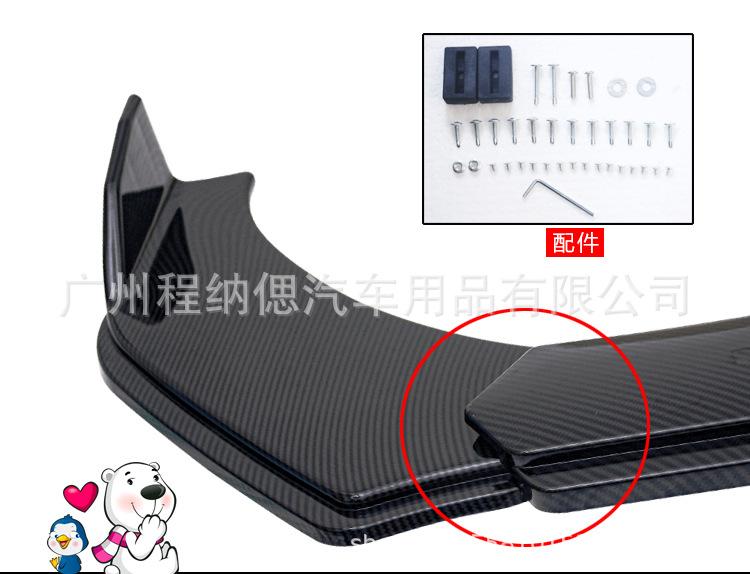 Pala delantera universal para coche, labio delantero, tamaño de mentón delantero, piezas de modificación envolvente, sedán hatchback, patrón de fibra de carbono, pala delantera de cuatro segmentos