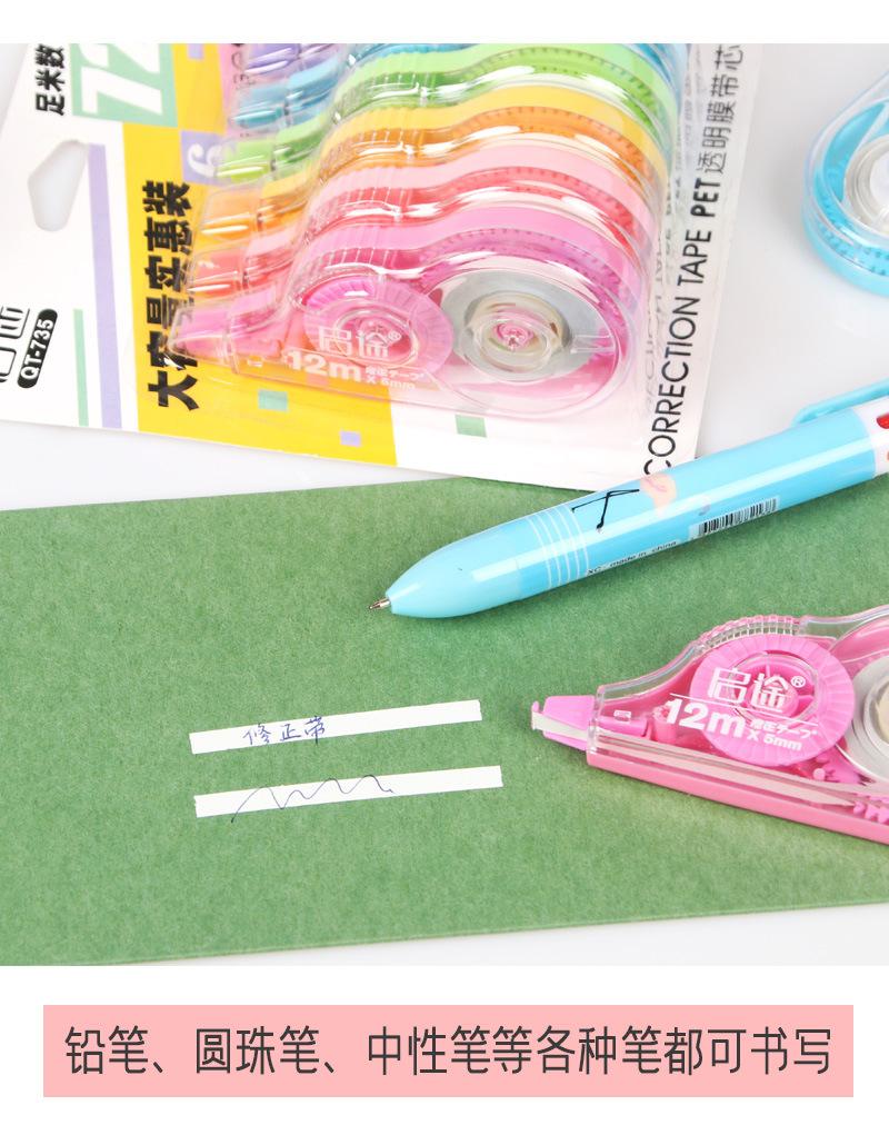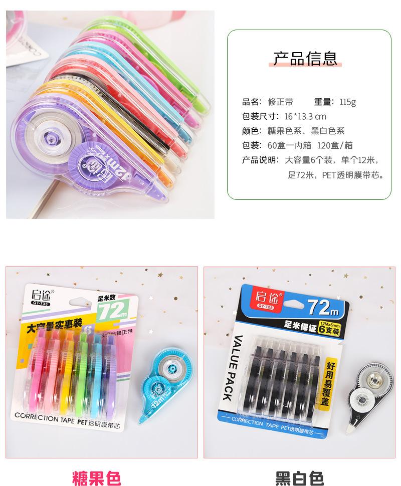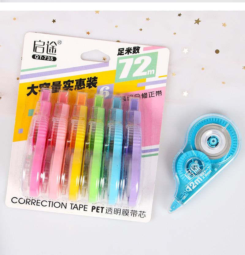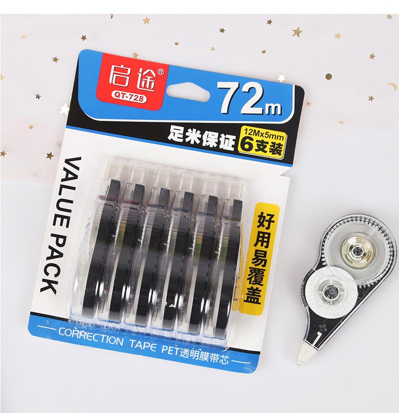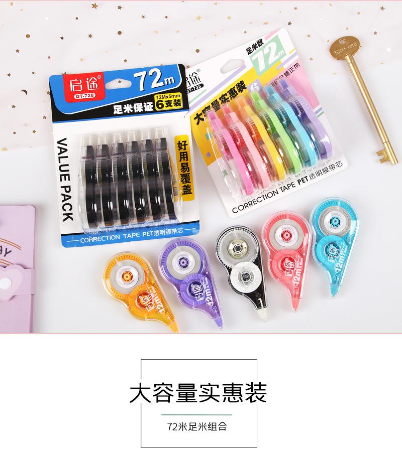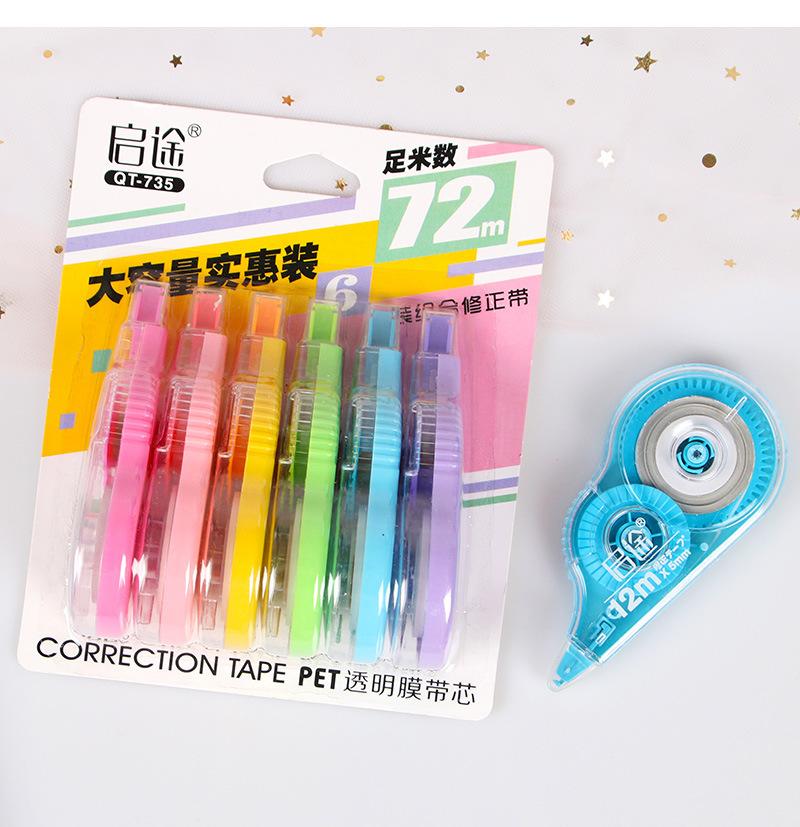 Cinta correctora Qitu, suministros para estudiantes, paquete de 6, cinta correctora, papelería, venta al por mayor, cinta correctora de gran capacidad y aspecto atractivo.