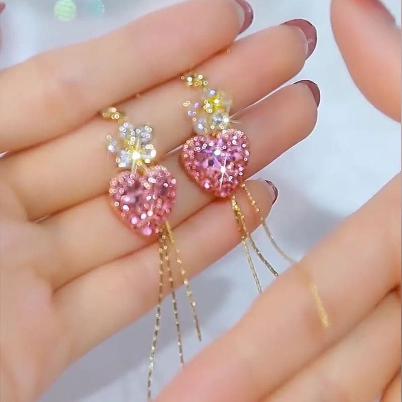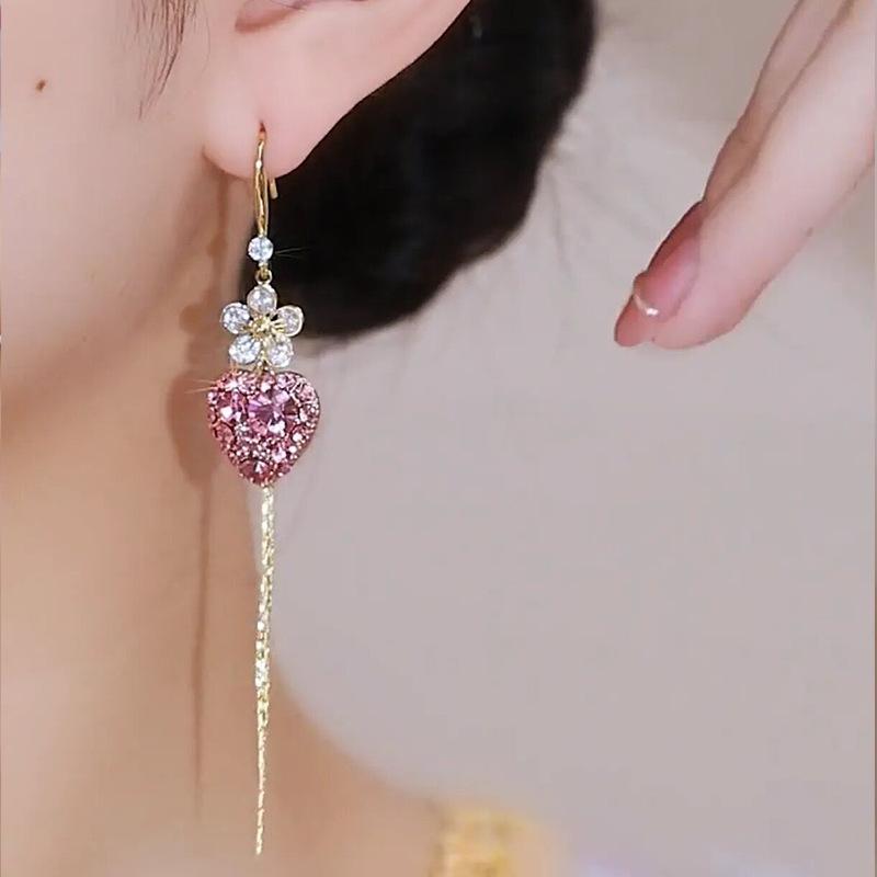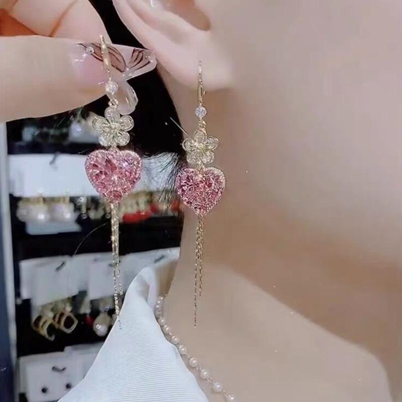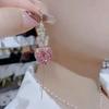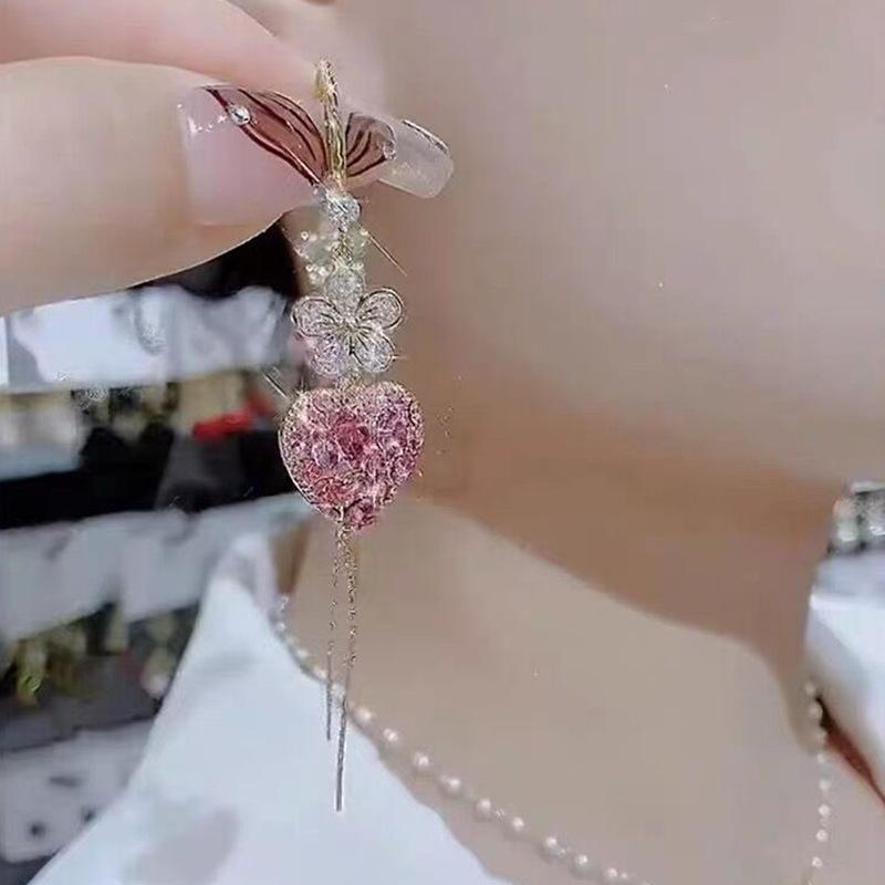 Exquisitos aretes de borla encantadores de flores rosas para mujer, de alta gama, adelgazantes para rostro redondo, temperamento elegante, personalizados, aretes largos