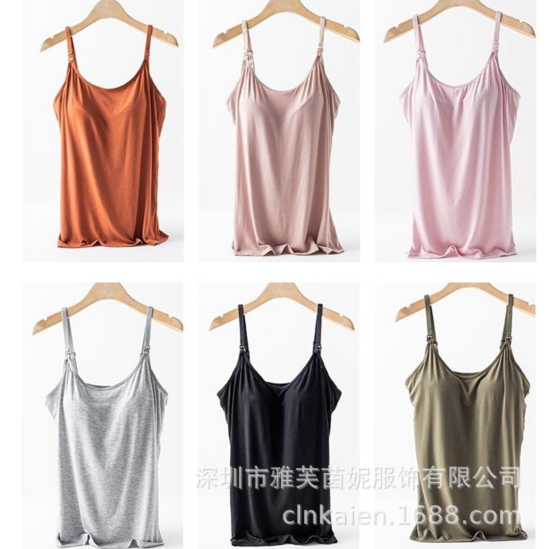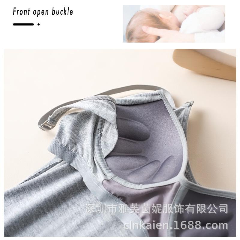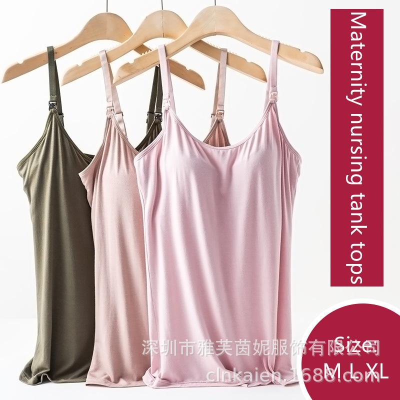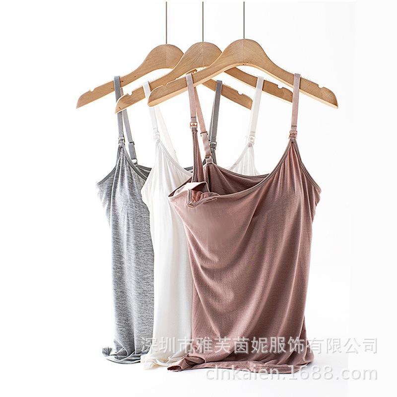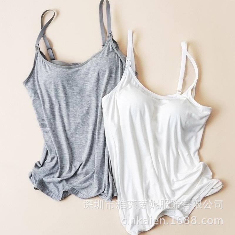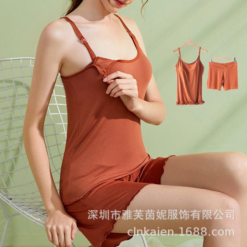 Traje de verano fino antibacteriano para mujeres embarazadas que amamantan en casa con almohadilla para el pecho, camiseta base para la alimentación posparto Luna