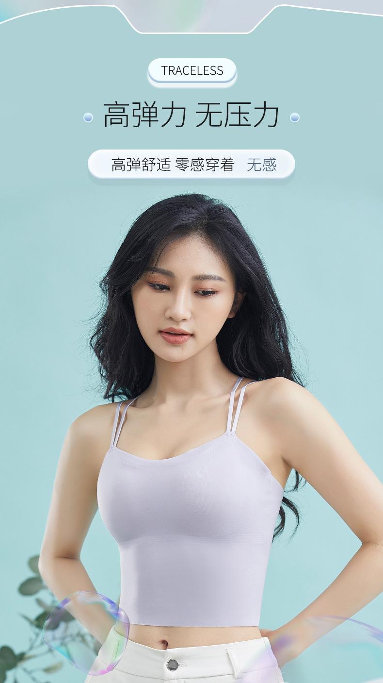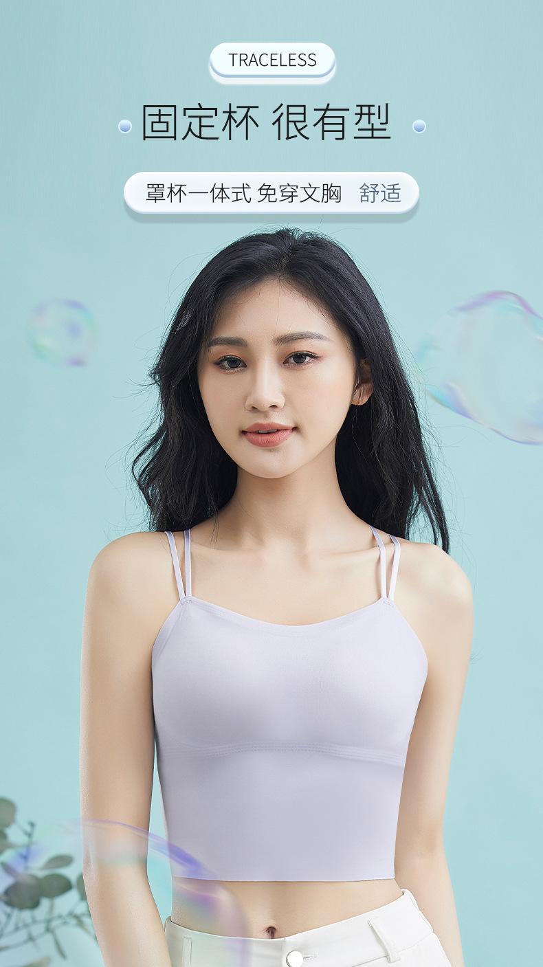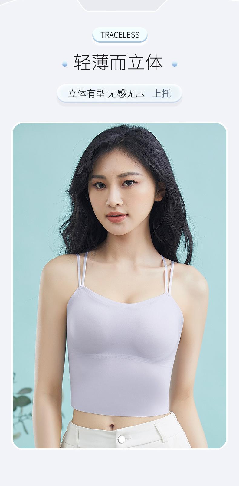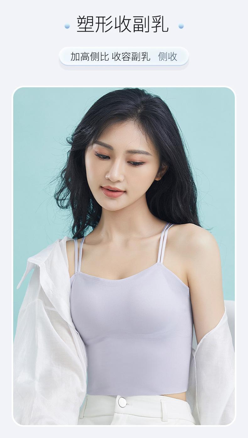 Camisola Ropa Interior de Seda de Hielo para Mujer con Almohadilla para el Busto Sujetador Todo en Uno Top Tubo de Verano Íntimos Ropa Exterior Recorte Sexy