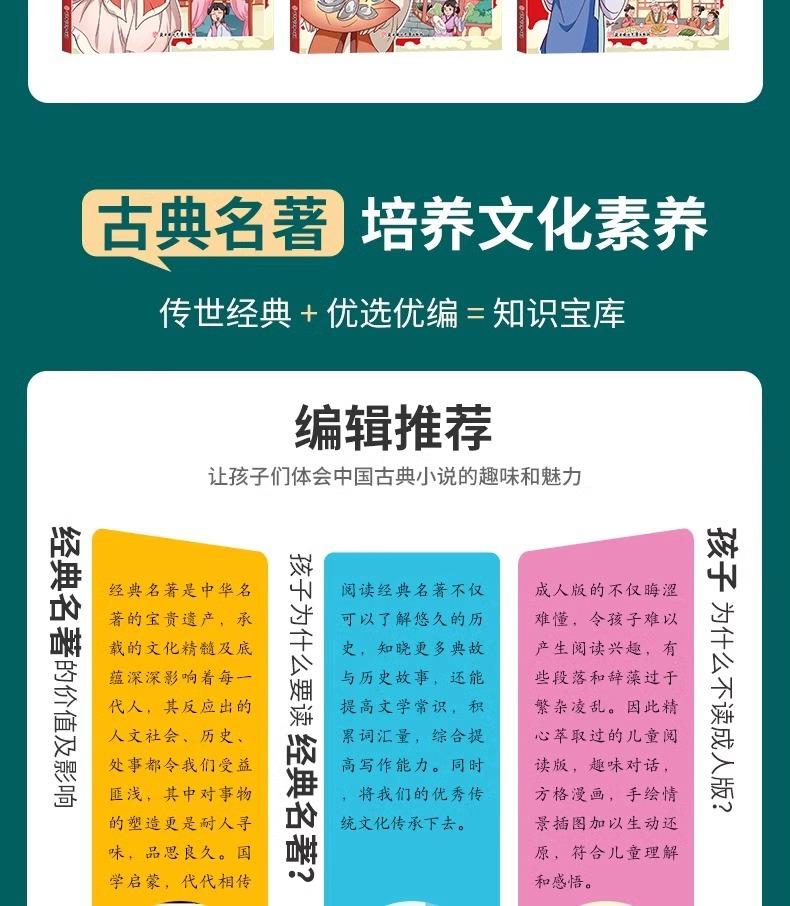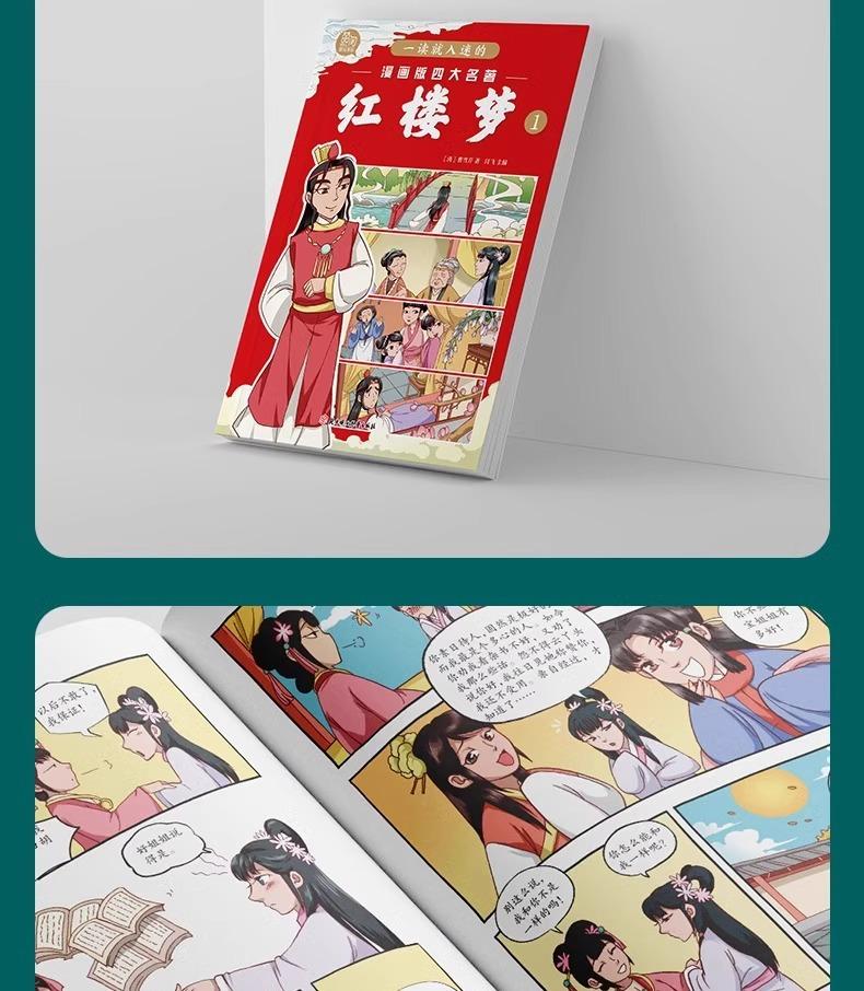 Una versión animada de las cuatro obras maestras sobre el viaje al oeste, el romance de los Tres Reinos, los forajidos del pantano, un sueño de Mansiones Rojas, libro ilustrado para niños.