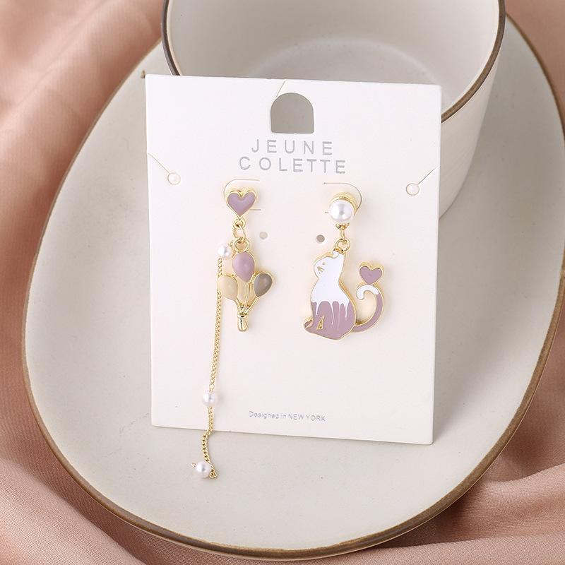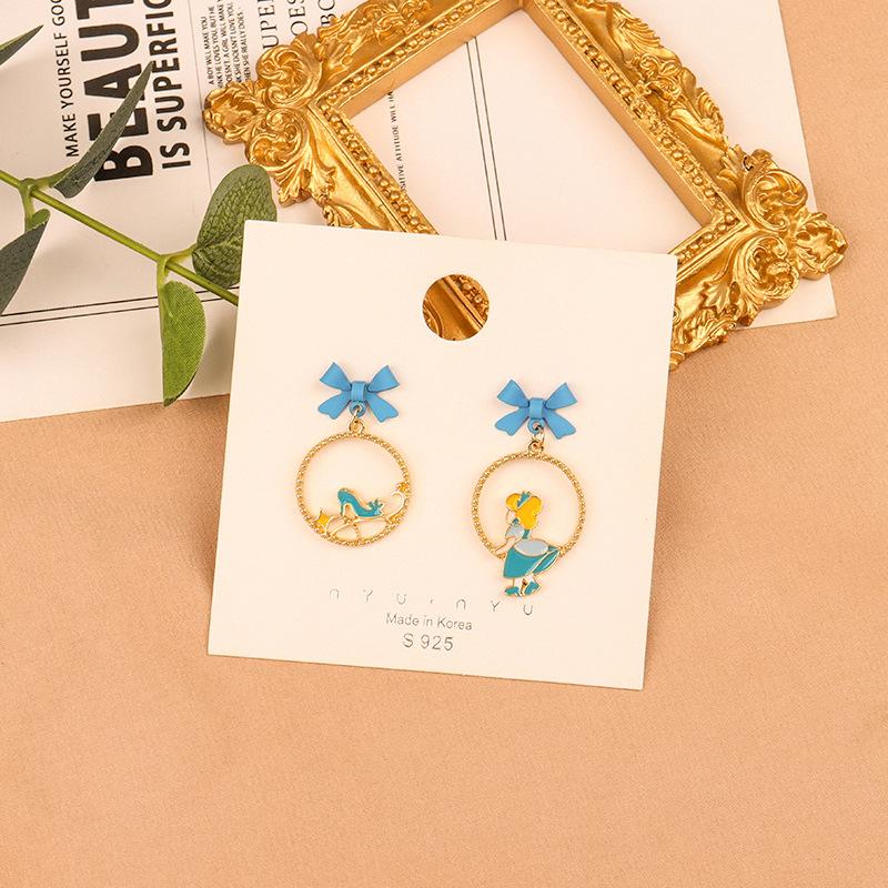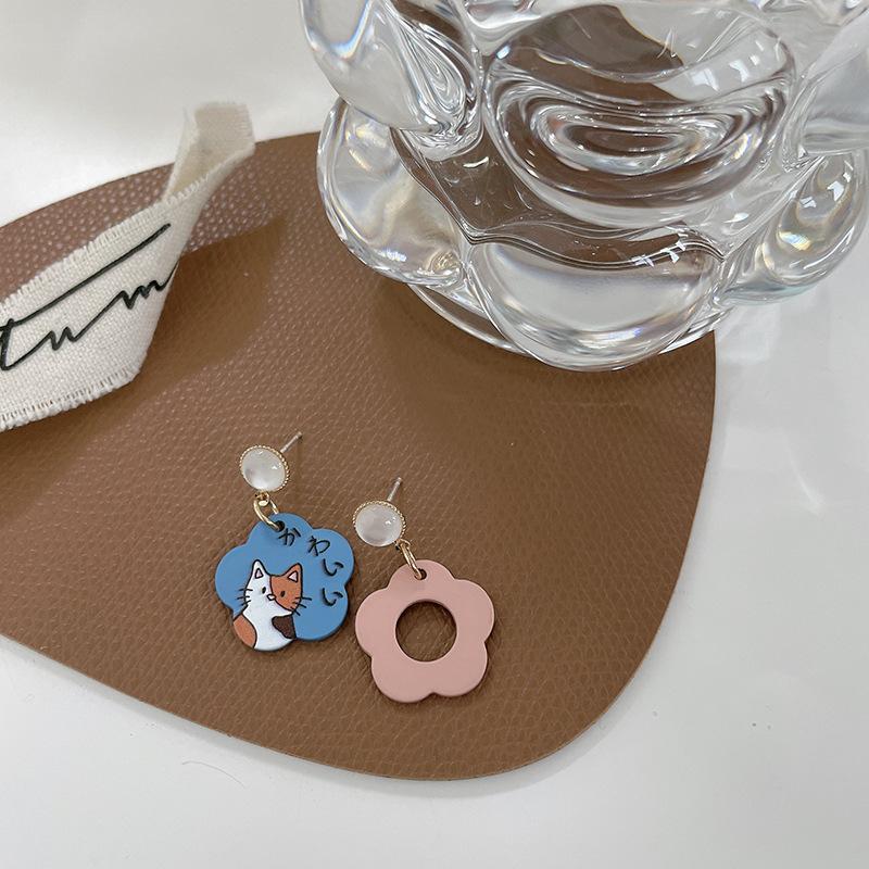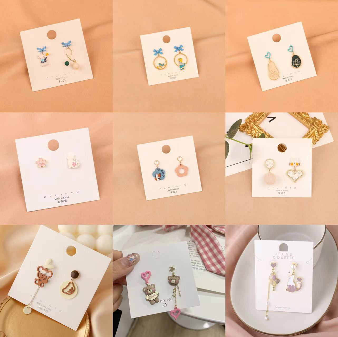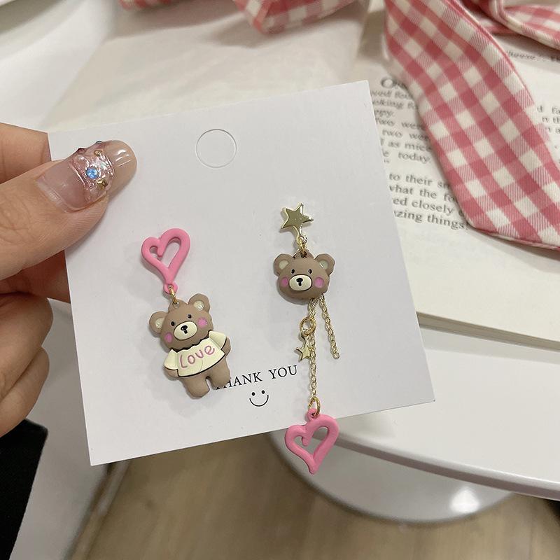 Compra Pendientes de plata S925 con diseño de aguja, estilo japonés y coreano, con borlas de dibujos animados, asimétricos, combinables y distintivos, para mujer. al por mayor en Joom.pro