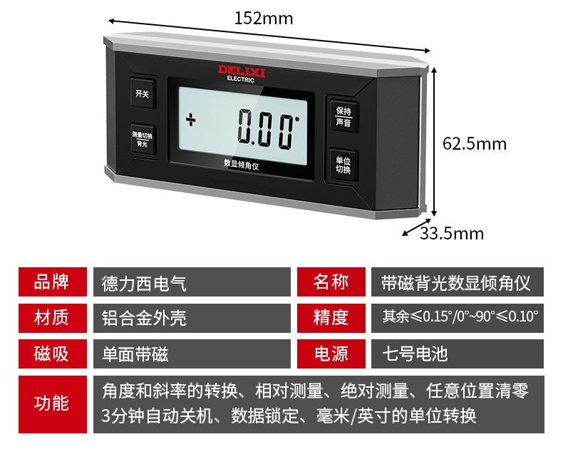 Delixi pantalla digital inclinómetro transportador pantalla digital inclinómetro caja inclinómetro medidor de ángulo medidor de pendiente medidor de nivel
