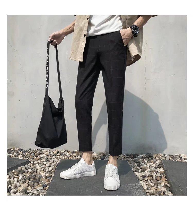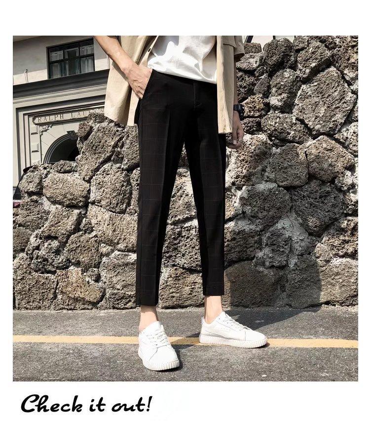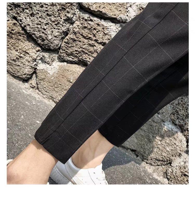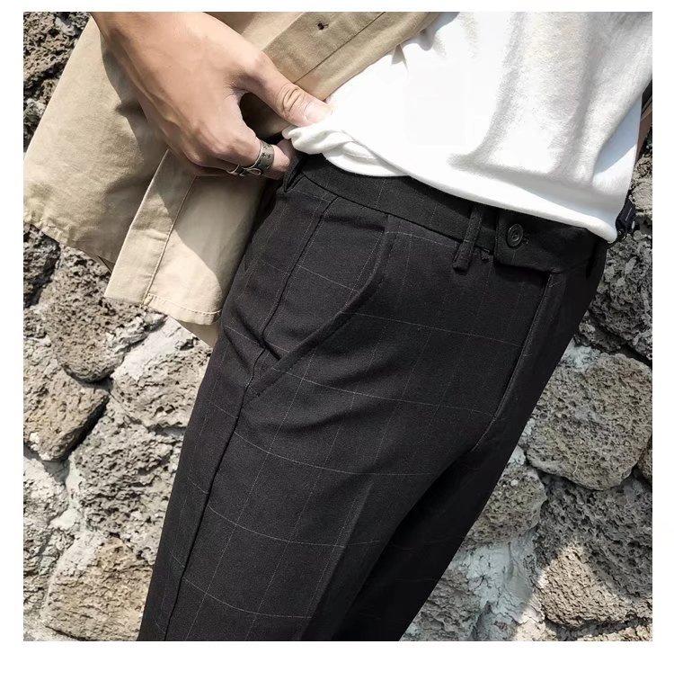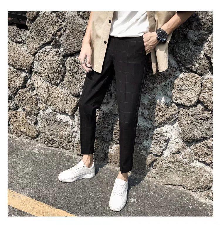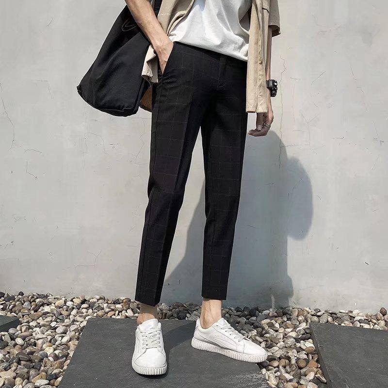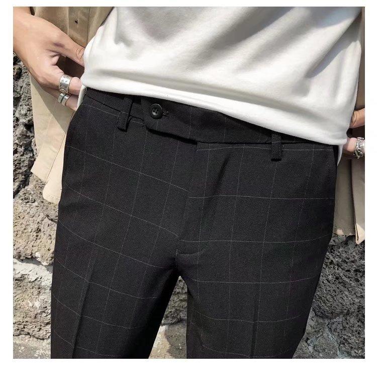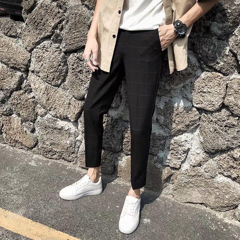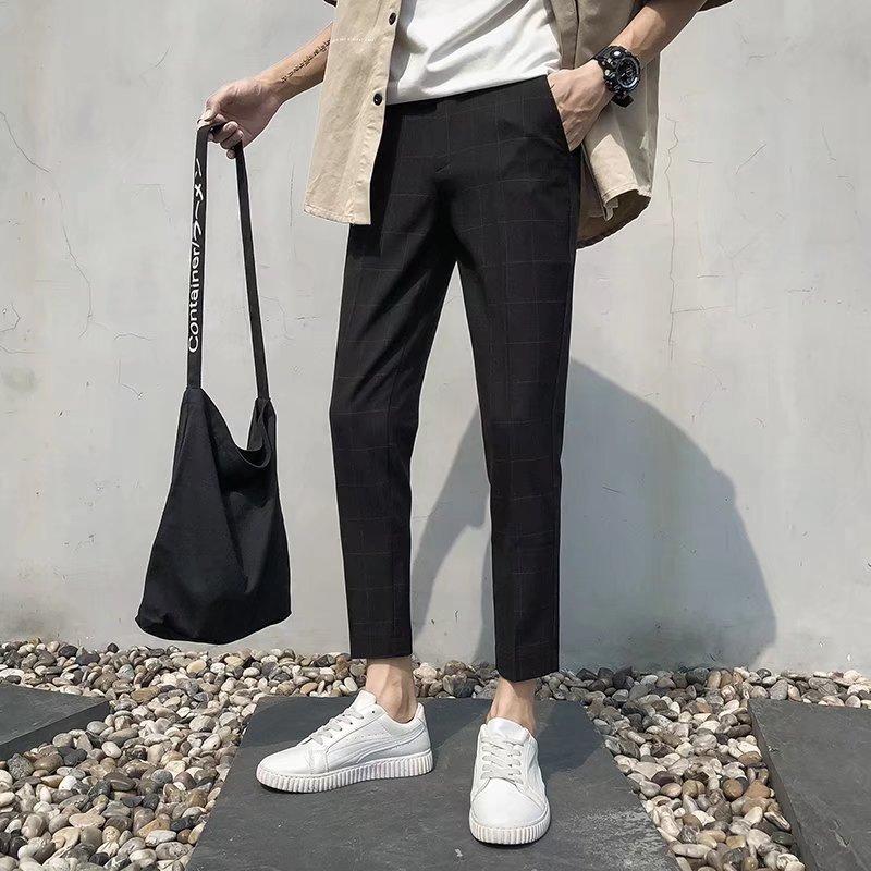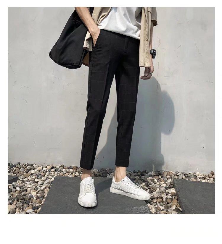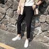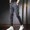 Pantalones casuales negros de otoño para hombre, pantalones ajustados, pantalones coreanos ajustados a la moda hasta el tobillo, pantalones elásticos de marca de moda.