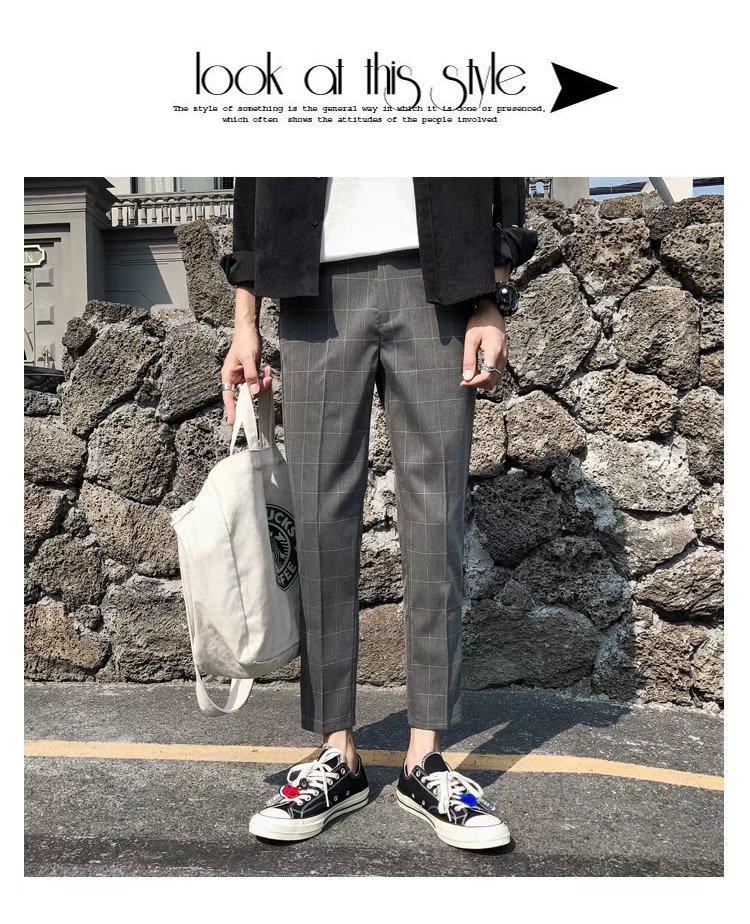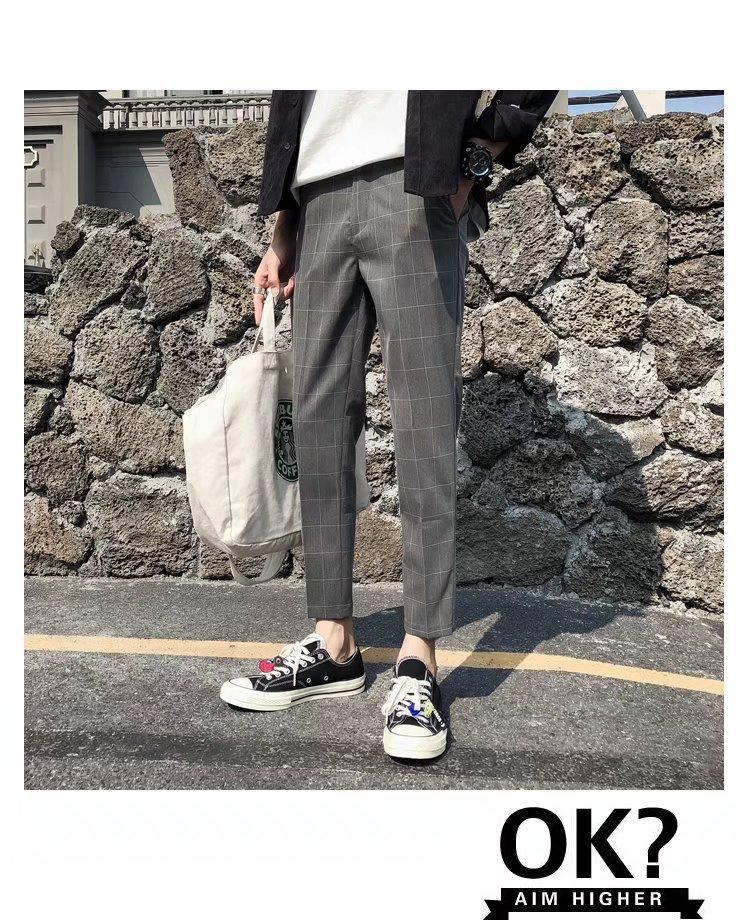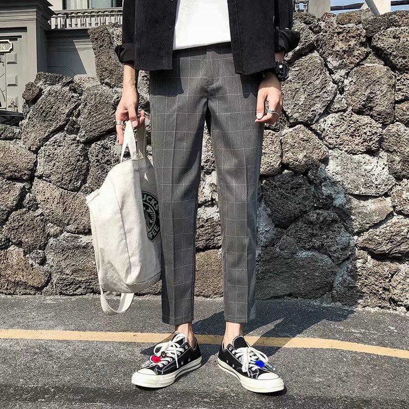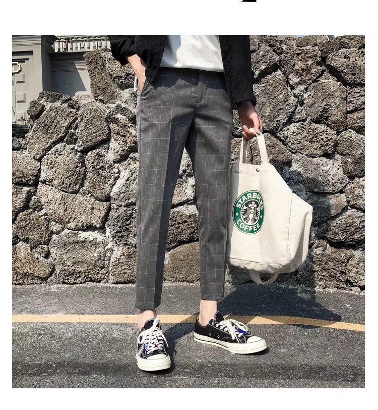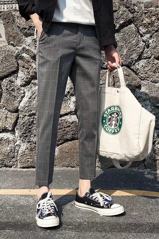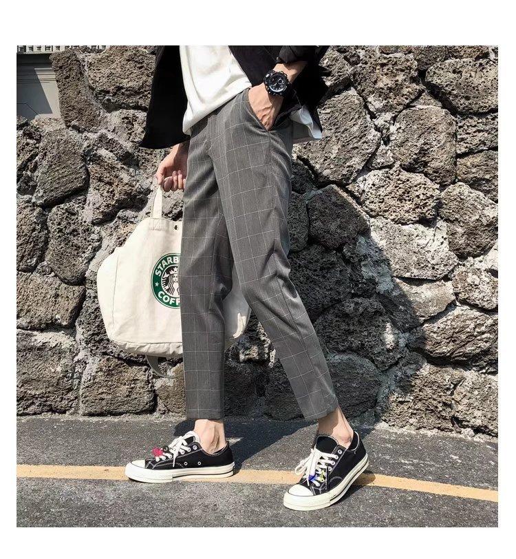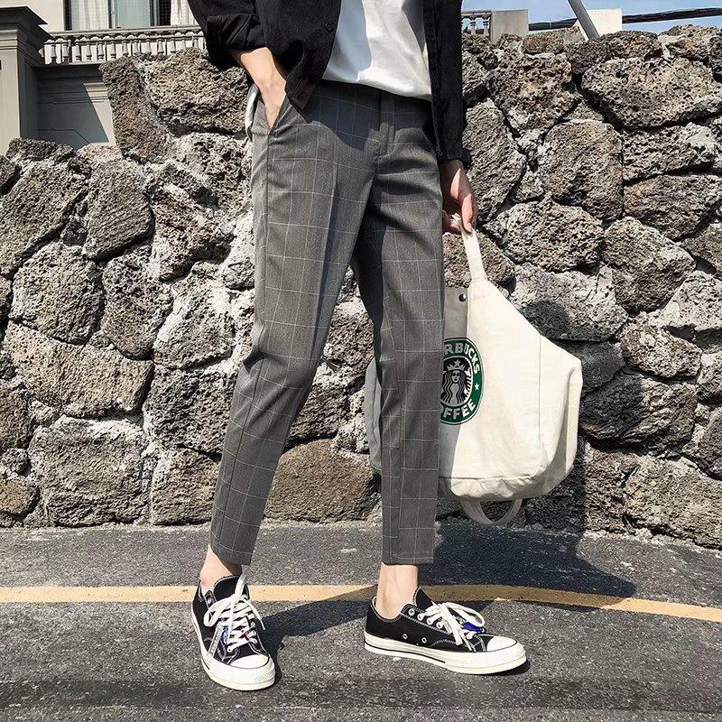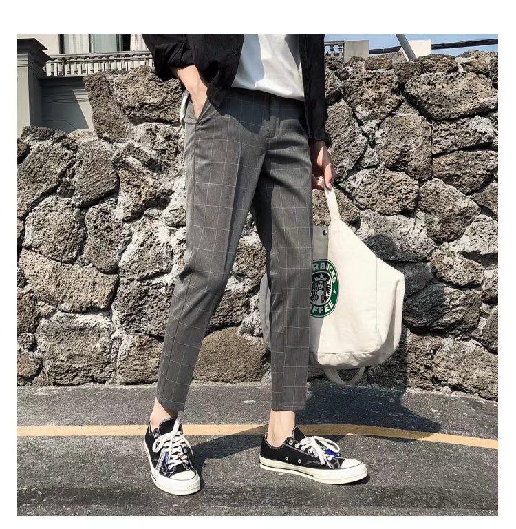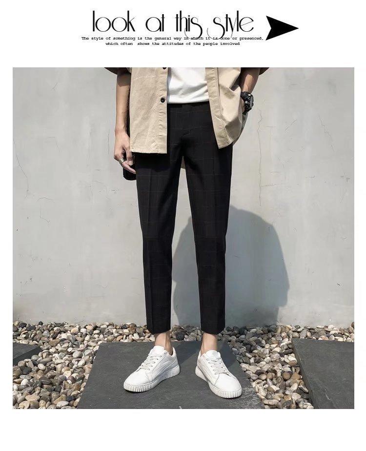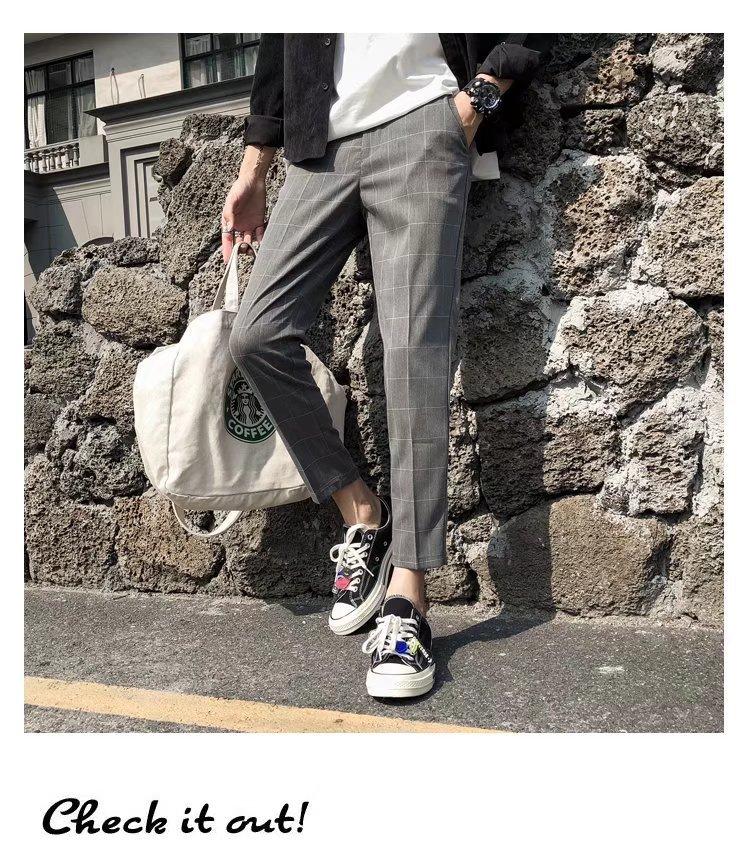 Pantalones casuales negros de otoño para hombre, pantalones ajustados, pantalones coreanos ajustados a la moda hasta el tobillo, pantalones elásticos de marca de moda.