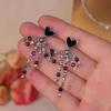 Elegantes pendientes con borlas de perlas y lazo de diamantes, diseño de nicho, pendientes de hadas súper combinables, ligeros y lujosos, con cara delgada.