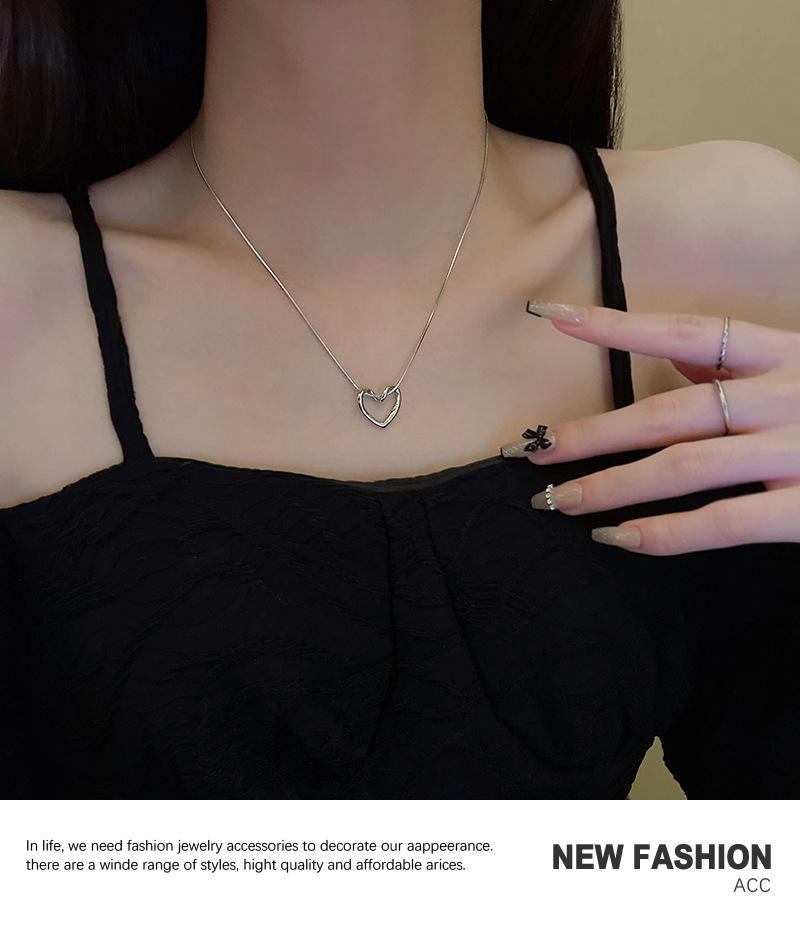 Collar de acero de titanio rojo de red de moda de estilo coreano, colgante de cadena de clavícula con personalidad retro femenina con temperamento de amor