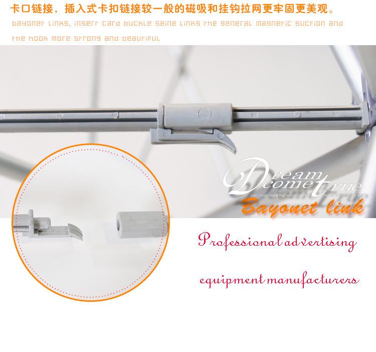 El material principal es un tubo de aleación de aluminio. La parte central está hecha de plástico de ingeniería y se conecta con piezas de plástico. La superficie se fija con velcro para tensar la tela. Este producto es más estable y más hermoso que las redes elásticas ordinarias. Este producto se puede expandir y contraer en un instante. Es simple y fácil colgar imágenes. Es adecuado para paredes de fondo en diversas ocasiones. Su mayor característica es su portabilidad. Flexible y versátil, se puede utilizar en diversas actividades promocionales.