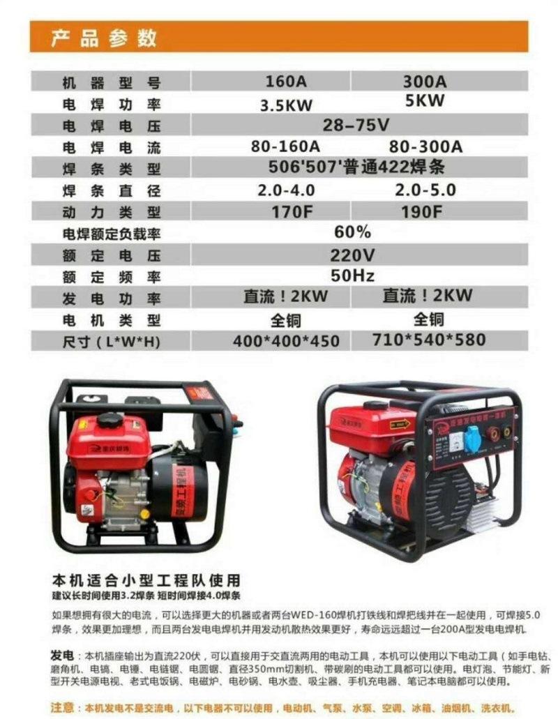 Gasoline 160A type, Diesel 160A type electric start without battery, Gasoline 300A, Diesel 300A electric start without battery