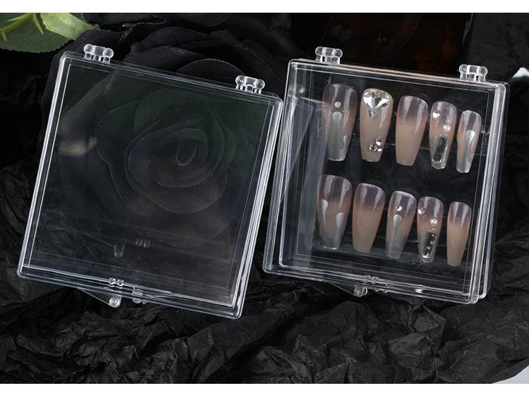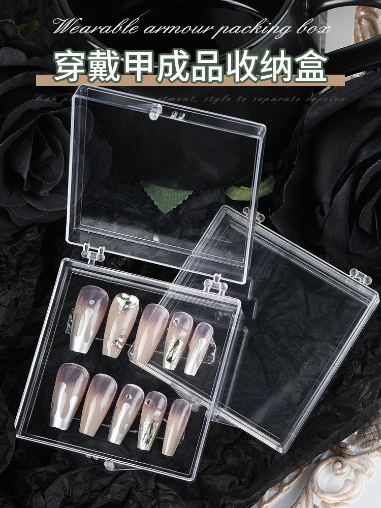 Caja de Almacenamiento para Uñas Postizas Portátil a Prueba de Polvo Transparente Cuadrada con Tapa Caja de Manicura de Material PP Caja de Exhibición de Uñas Venta al por Mayor