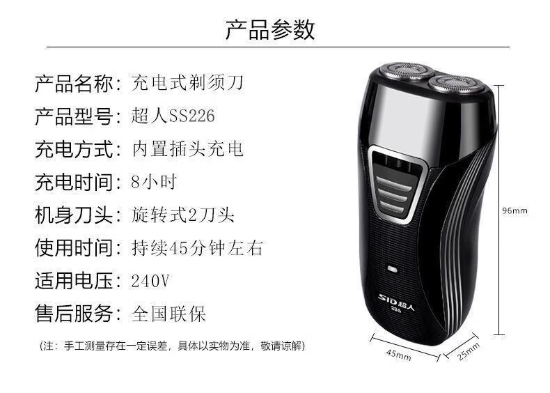 Afeitadora Superman Ss230 Afeitadora Eléctrica Recargable Lavable para la Cabeza para Hombre Afeitadora Rotatoria de Doble Cabezal