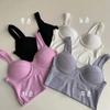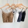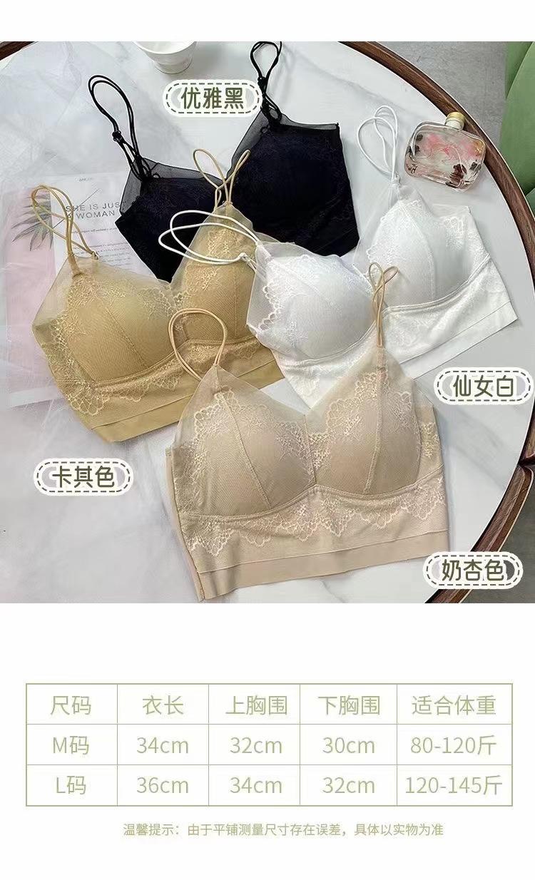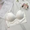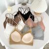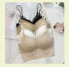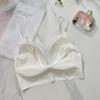 Camisola de seda helada francesa con encaje en el pecho, sin aro de acero, push up, copa fija de látex, ropa interior con espalda de belleza en forma de U