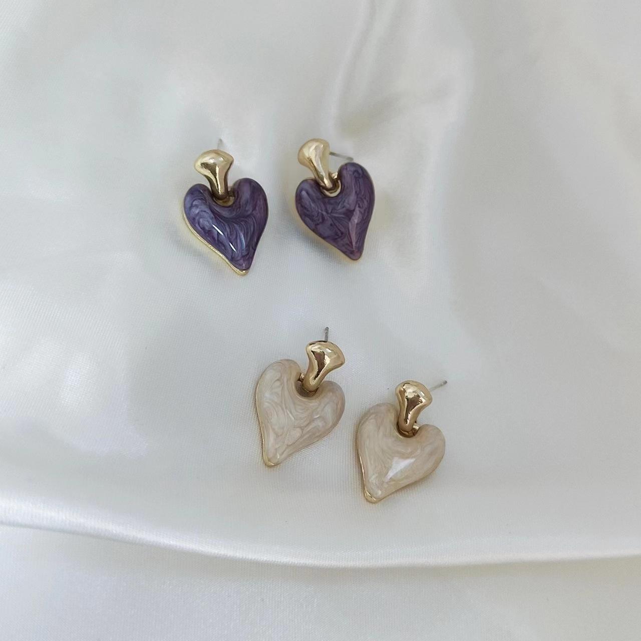 925 silver needle white love earrings, 925 silver needle purple love stud earrings