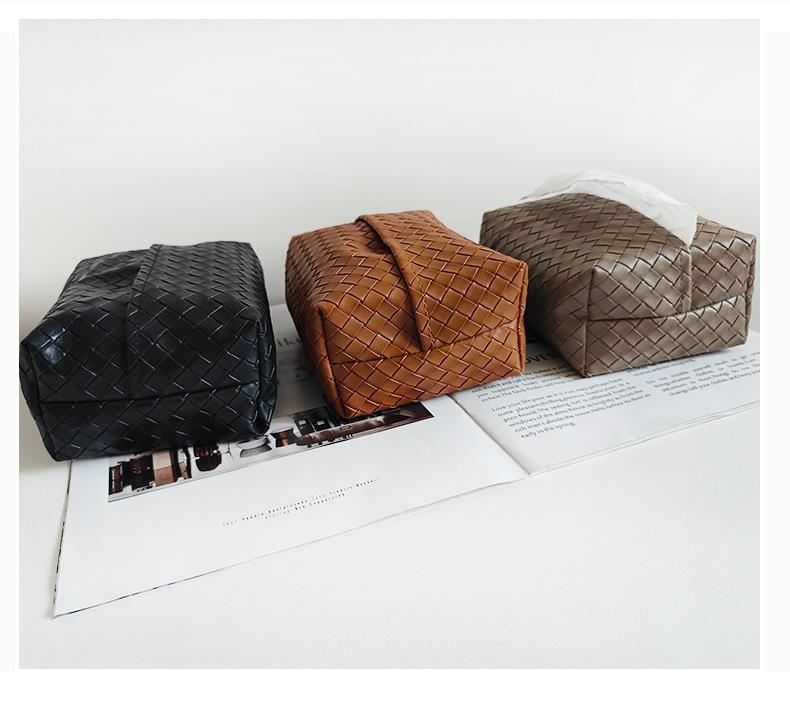 Caja de Pañuelos de Cuero Vintage con Patrón Tejido de Lujo Ligero para Hogar, Coche, Sala de Estar, Caja de Almacenamiento de Servilletas