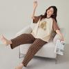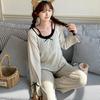 [Algodón puro] Pijamas de mujer de primavera y otoño de manga larga, dulces, frescos, con cuello redondo, ropa informal para el hogar, traje que se puede usar