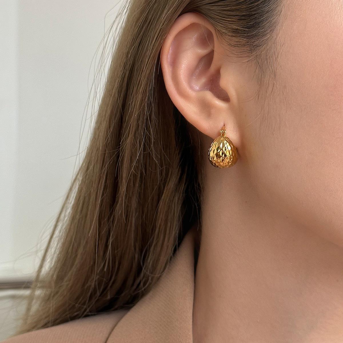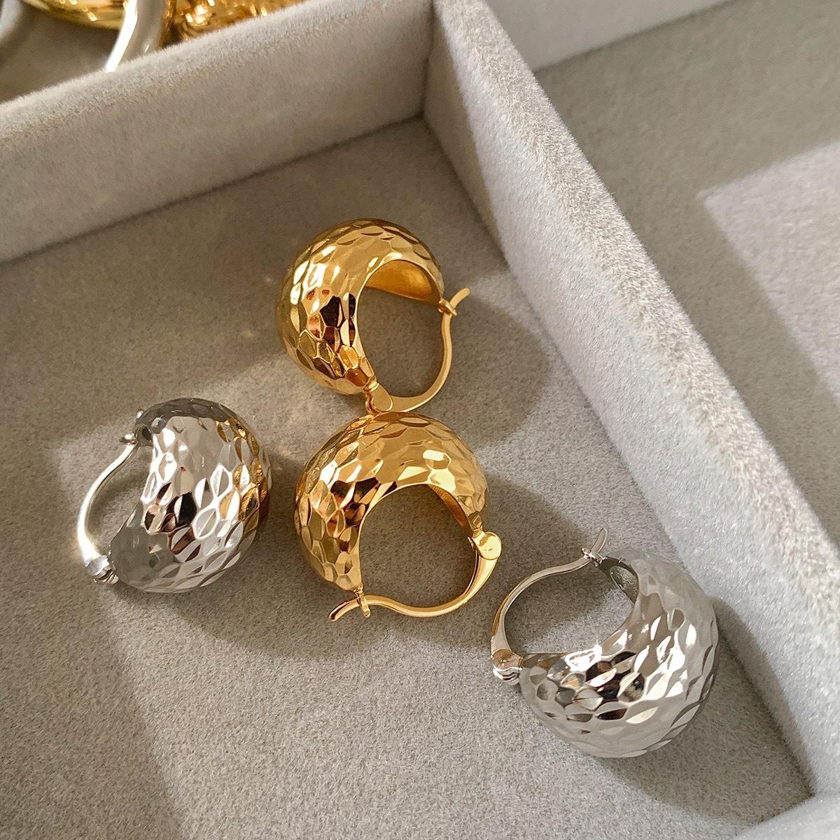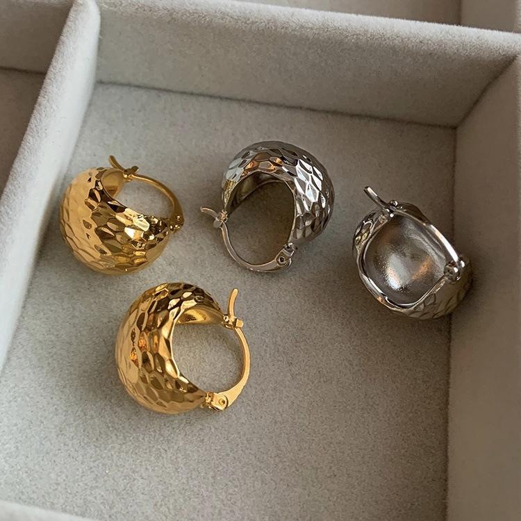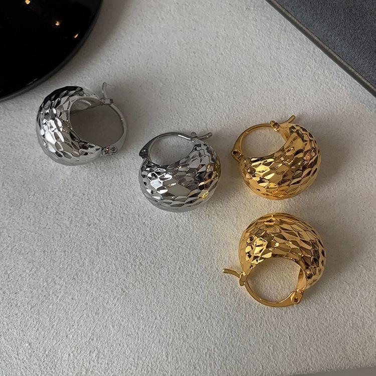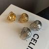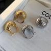 Pendientes de alta gama con semicírculo dorado retro europeo y americano para mujer, diseño de nicho de moda de lujo ligero, pendientes con hebilla de oreja elegantes y sencillos.
