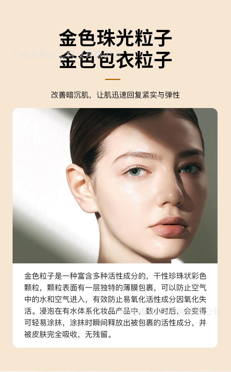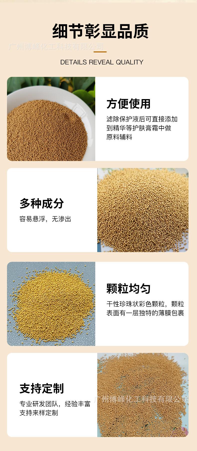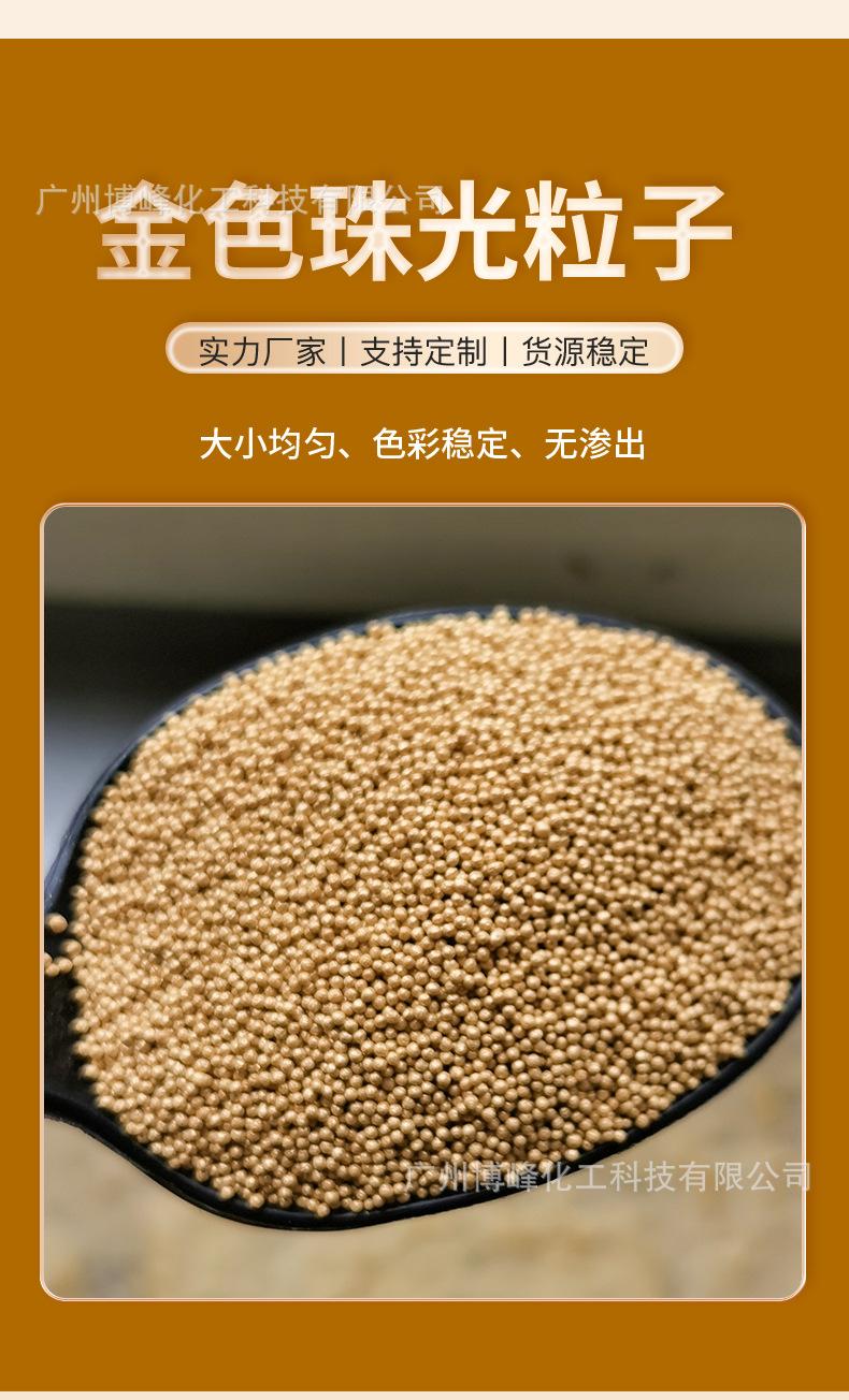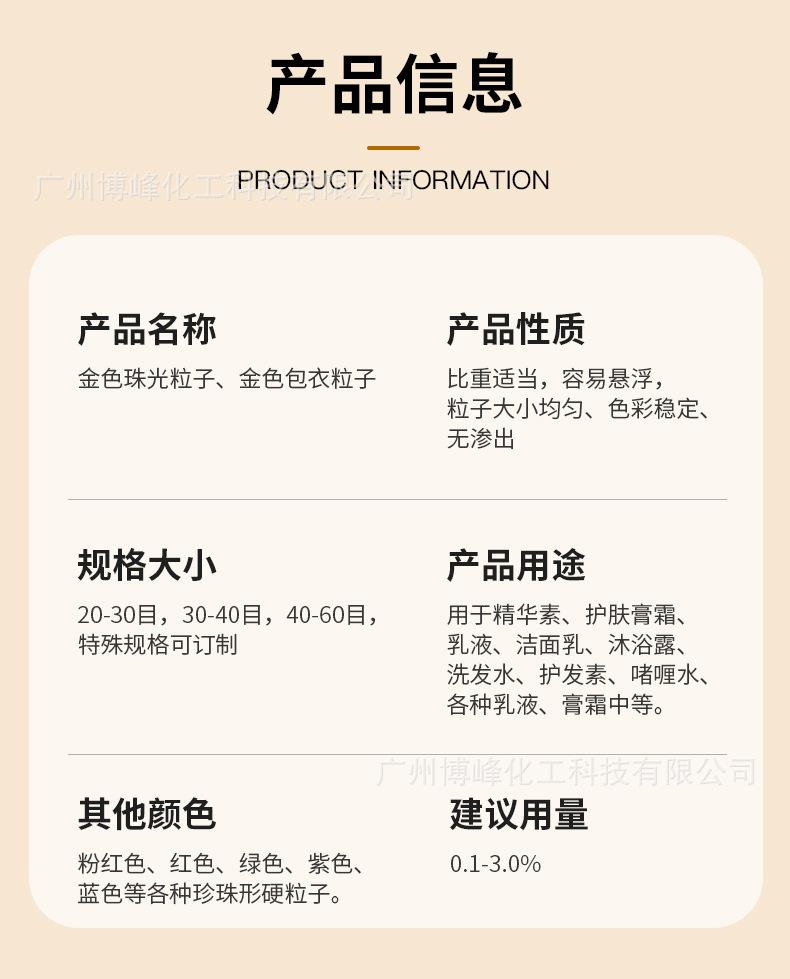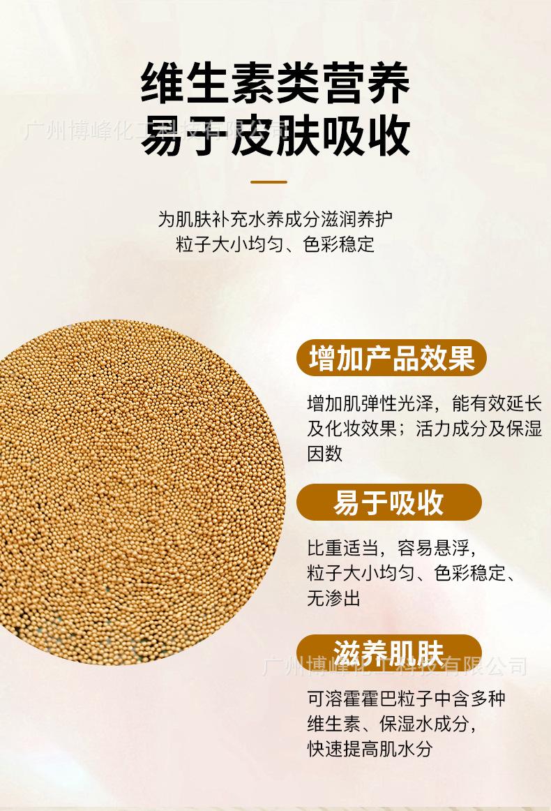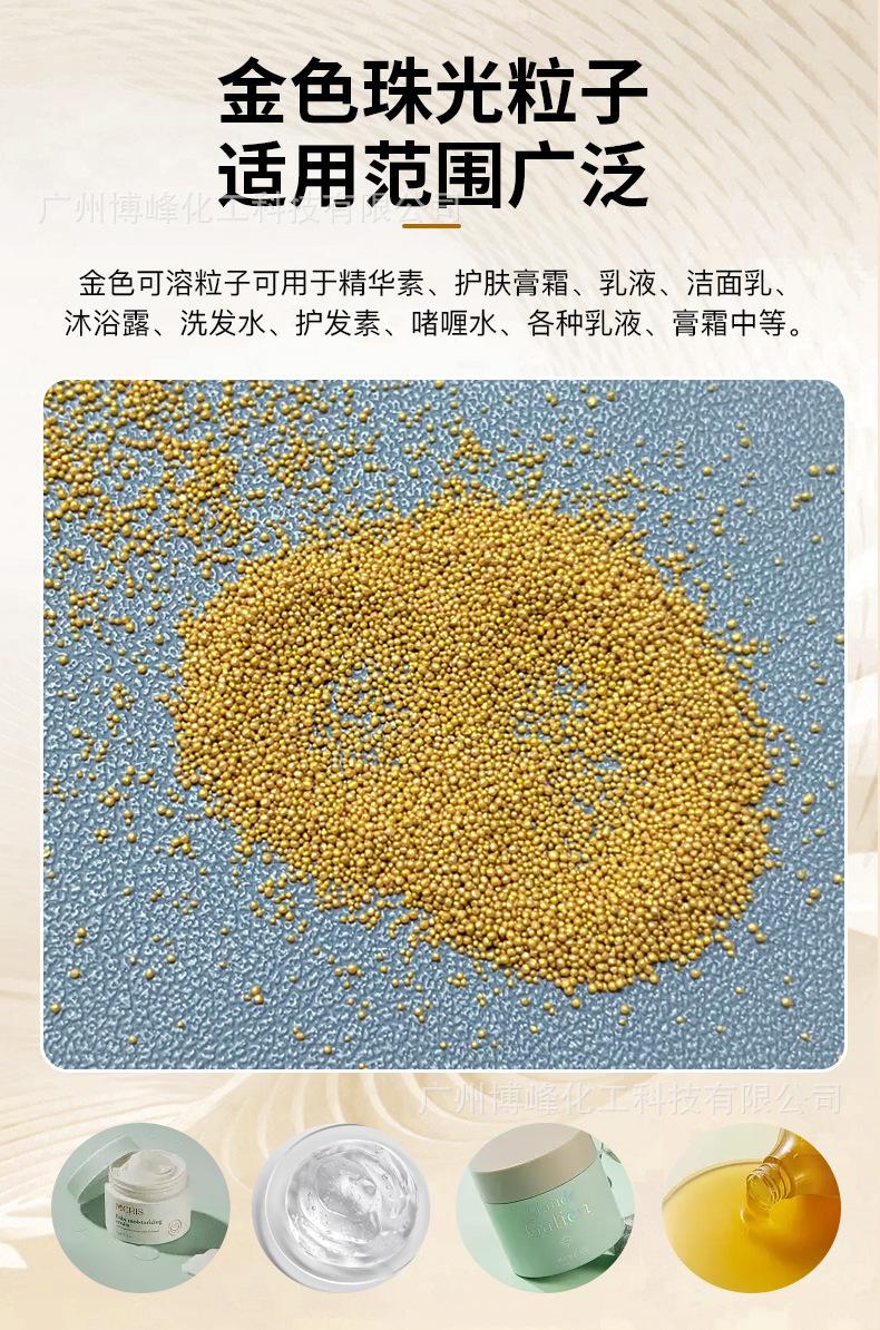 Los fabricantes de fuentes detectan aditivos de partículas de esencia de grano de jojoba perlado que pueden disolver partículas perladas doradas.