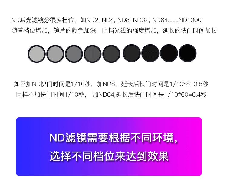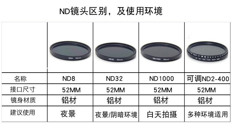 Espejo de Densidad Gris Medio Ajustable ND2-400 Espejo Atenuador ND8 Espejo Atenuador ND1000 Lente 52mm Filtro para Teléfono Móvil