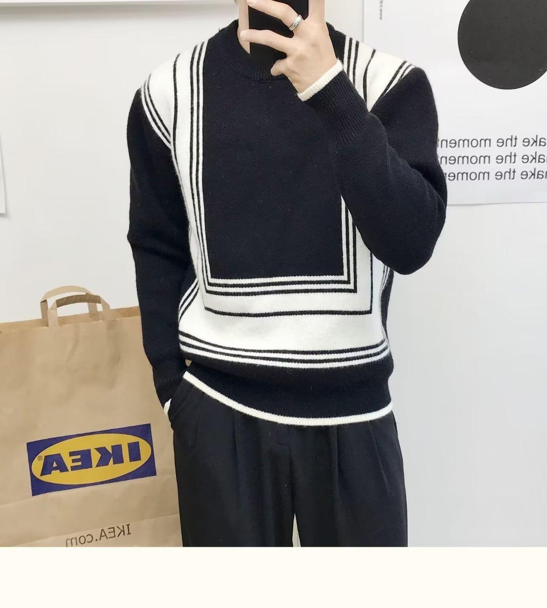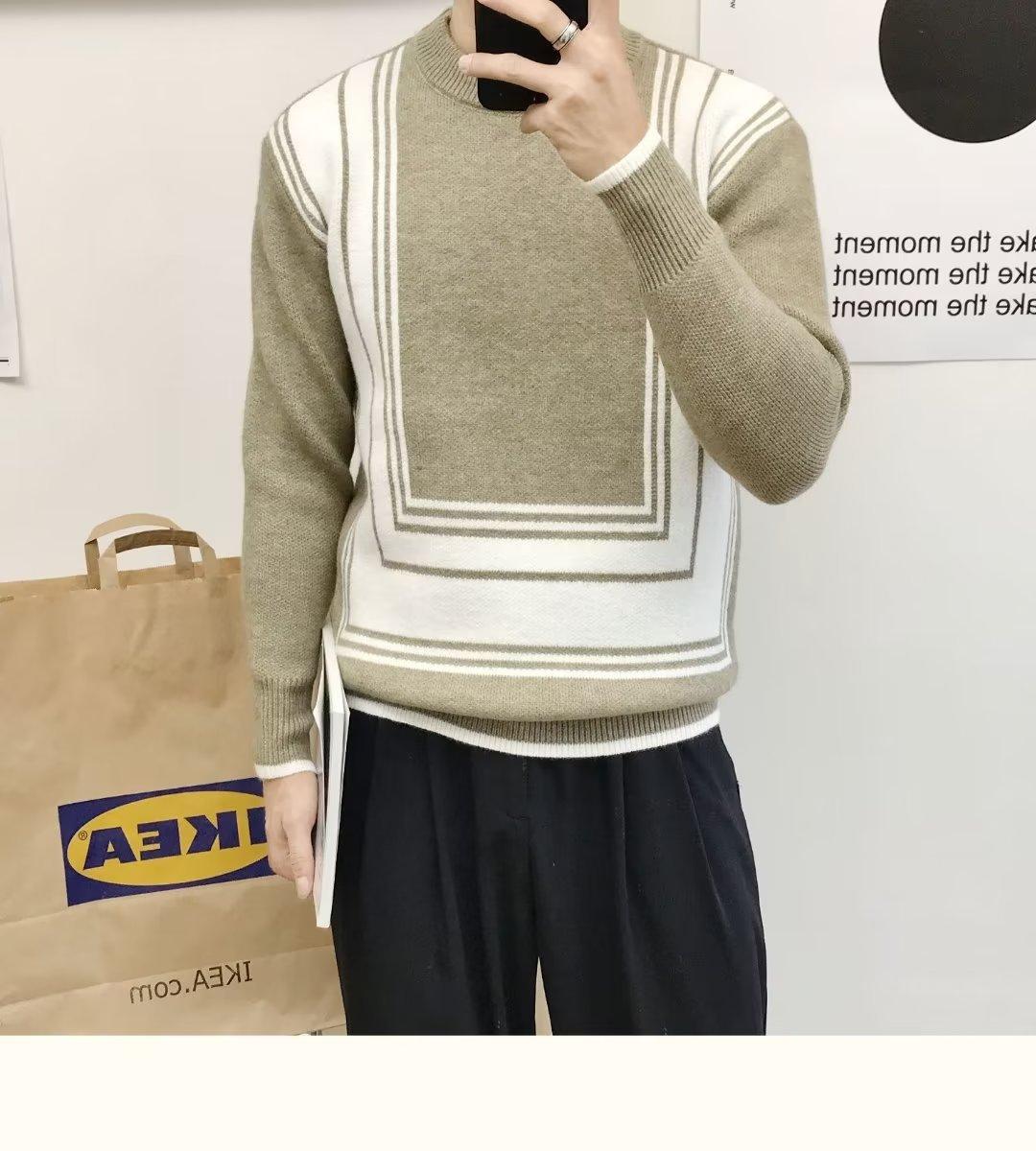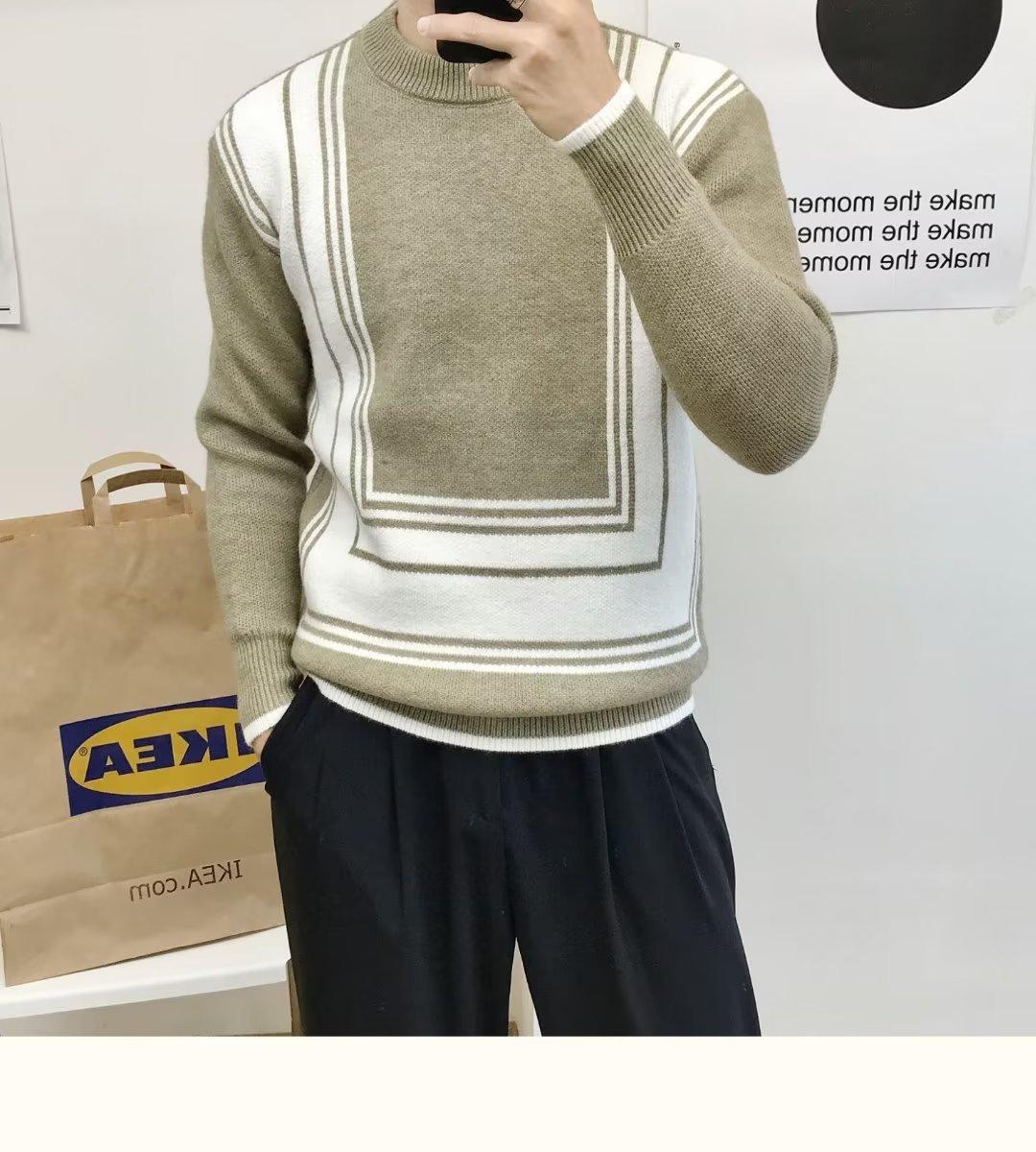 Suéter de color a juego de alta calidad para hombre, otoño e invierno, nuevo estilo coreano, estilo perezoso, suéter holgado de cuello redondo, ropa superior