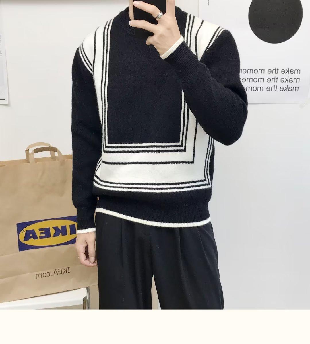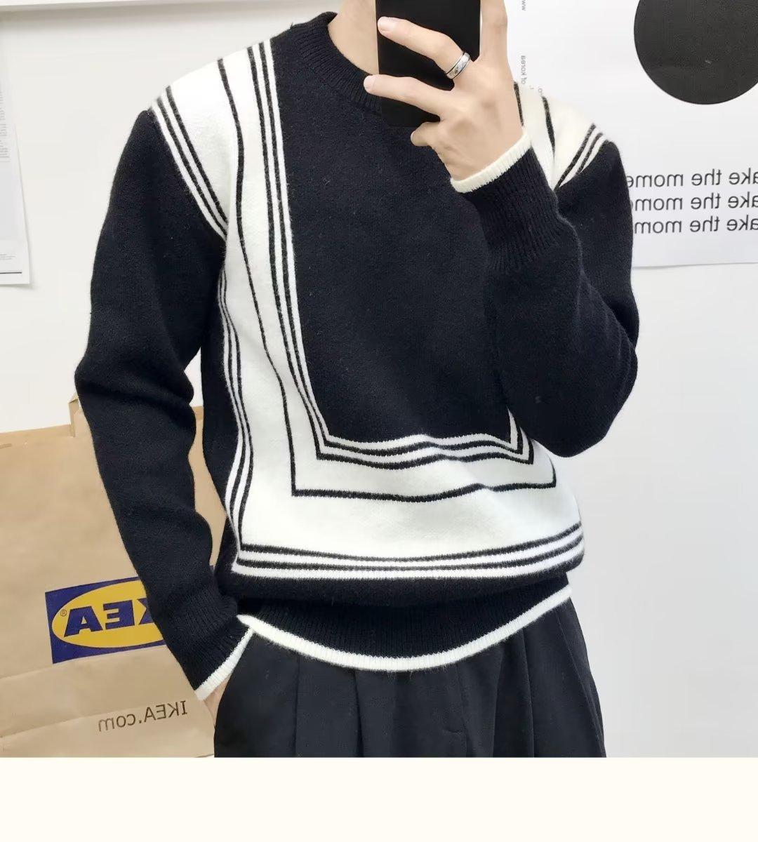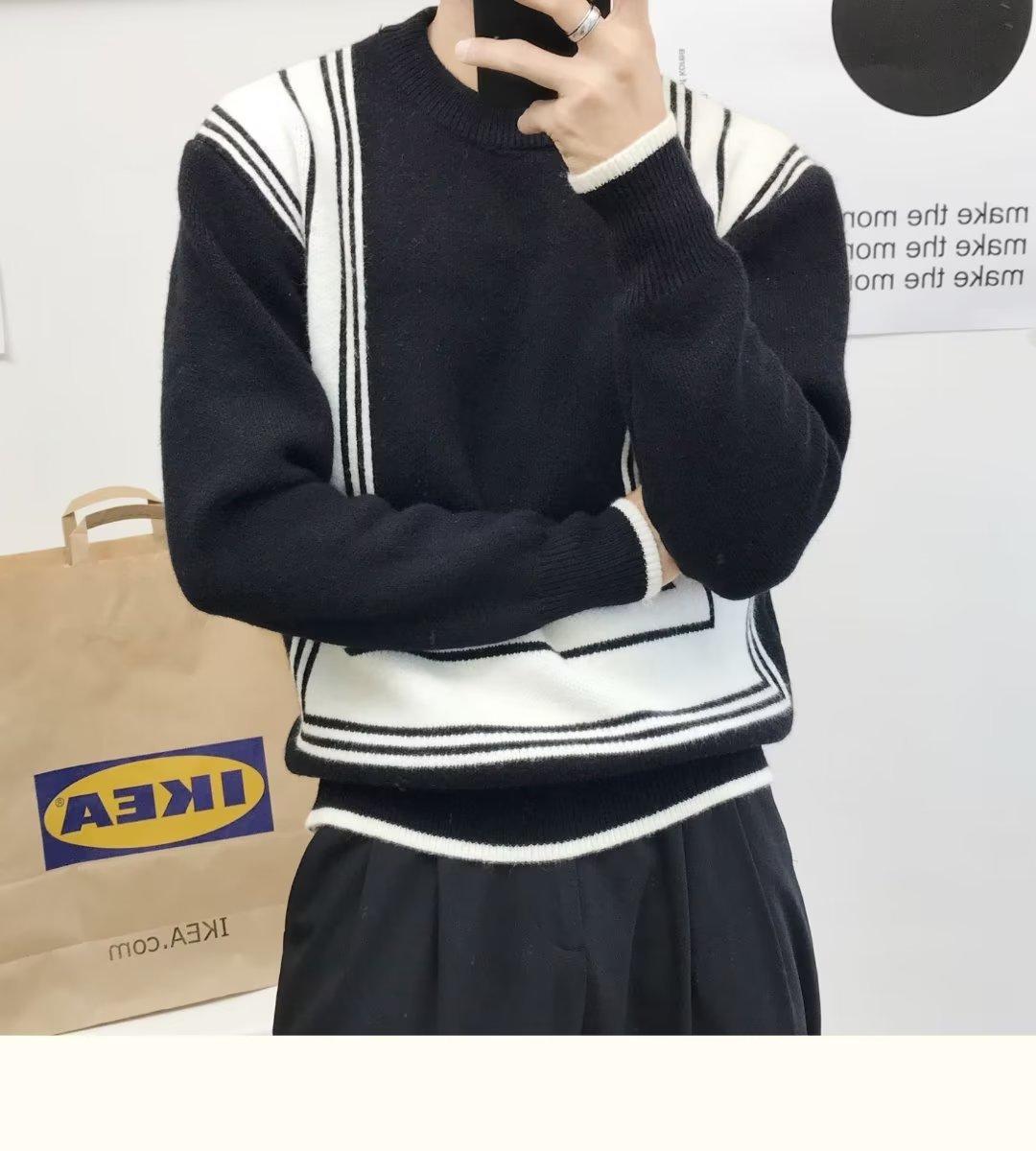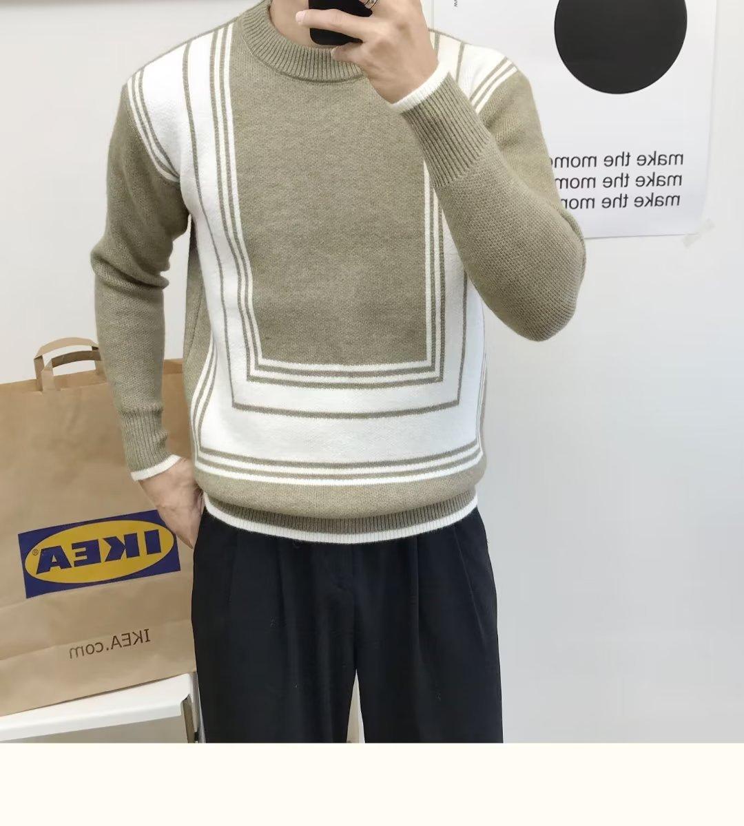 Suéter de color a juego de alta calidad para hombre, otoño e invierno, nuevo estilo coreano, estilo perezoso, suéter holgado de cuello redondo, ropa superior