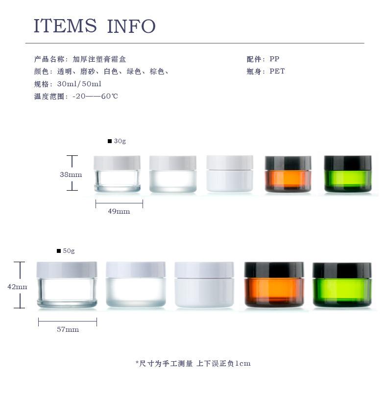 Caja de crema moldeada por inyección Botella de crema Caja de crema para el cuidado de la piel Envase de cosméticos Botella en stock Tanque de crema al por mayor Espesado