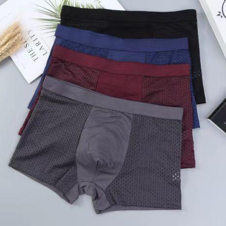 Ropa interior antibacteriana de seda de hielo de color sólido modal nuevo transfronterizo para hombre, calzoncillos bóxer transpirables de cintura media, venta directa de fábrica