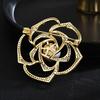 Broche clásico de estilo coreano con forma de rosa hueca, accesorio de lujo de alta gama para mujer.