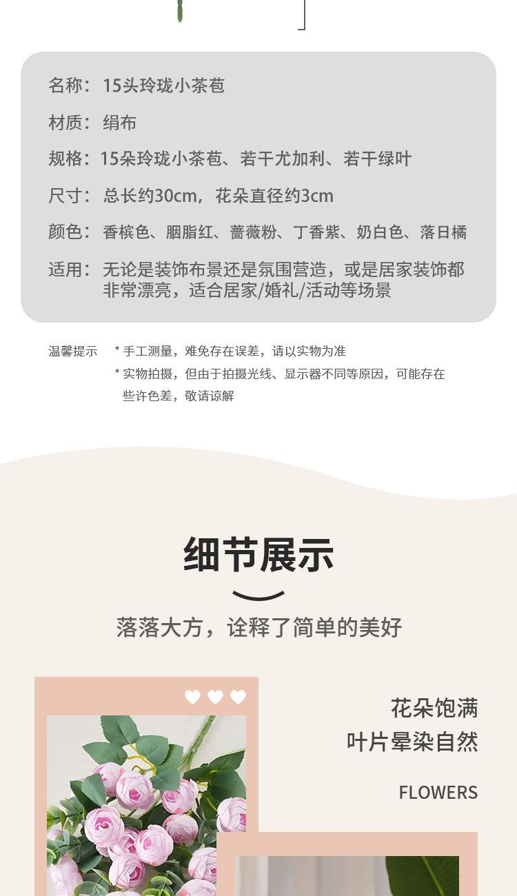 Flor artificial, 15 cabezas, exquisita flor de té pequeña, accesorios para bodas, muebles, decoración de escritorio, accesorios de fotografía.