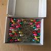 Venta al por mayor de agujas de perla de metal para posicionamiento de ropa, accesorios de herramientas de bricolaje, agujas de perla de metal de cuatro colores, caja de 100